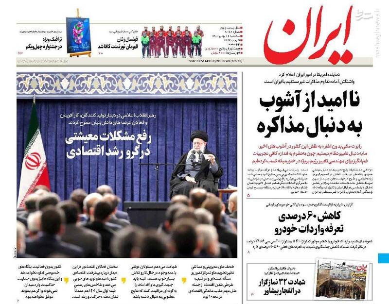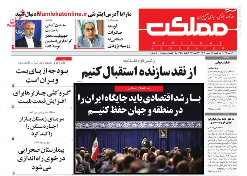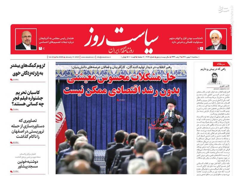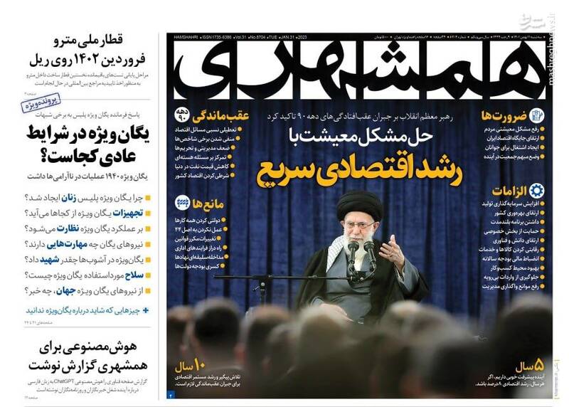 صفحه اول روزنامههای سهشنبه ۱۱ بهمن ماه ۱۴۰۱