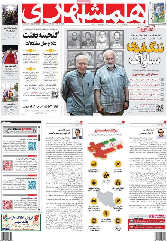 صفحه اول روزنامههای یکشنبه ۳۰ بهمن ماه ۱۴۰۱
