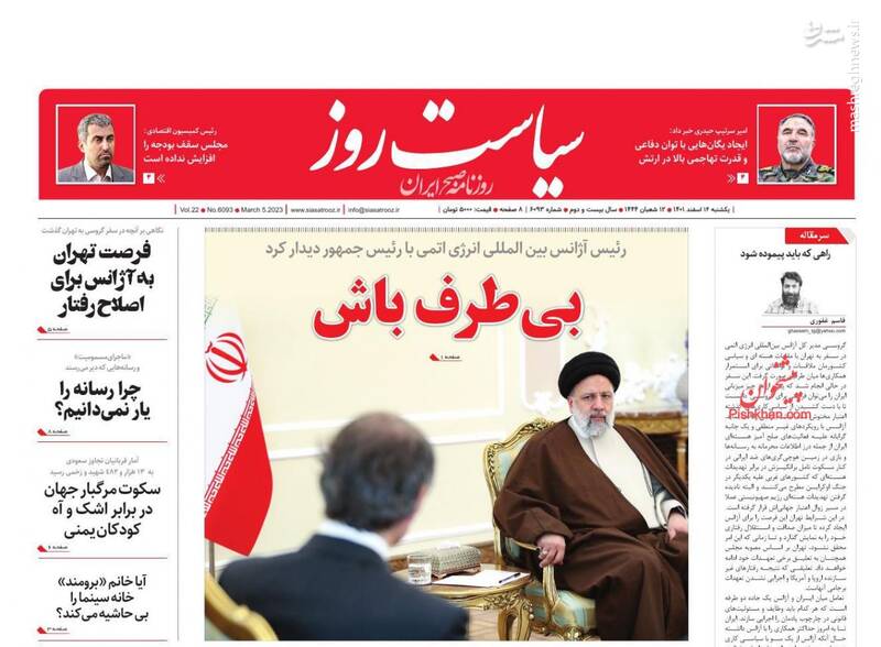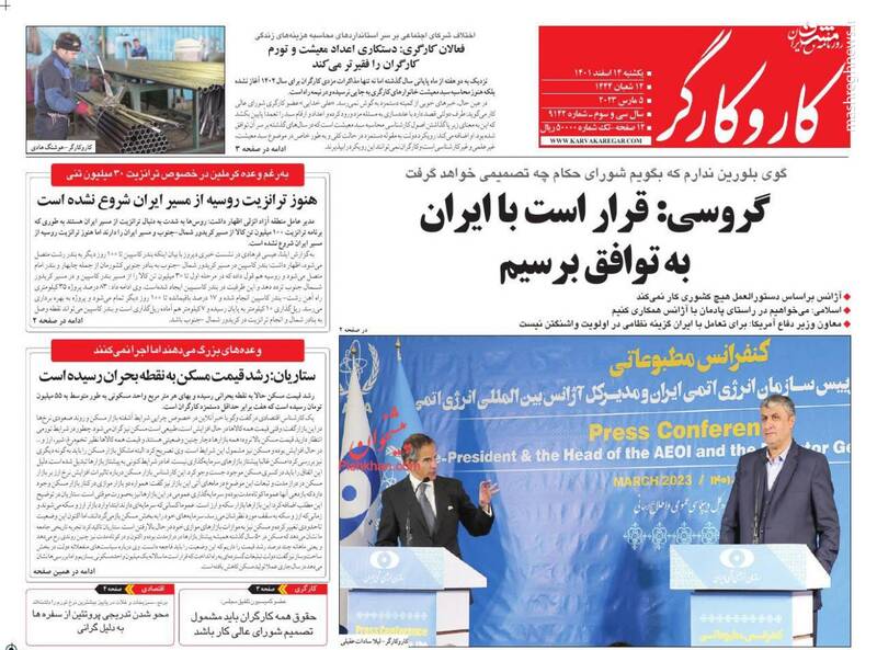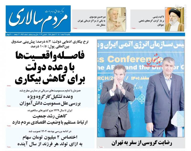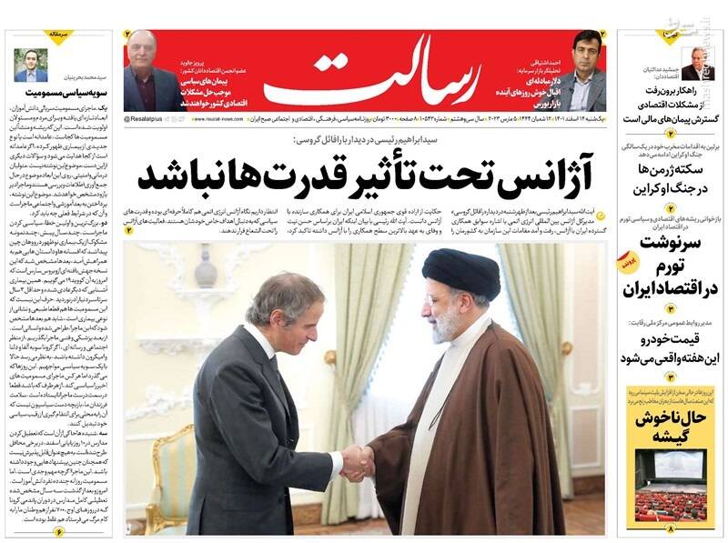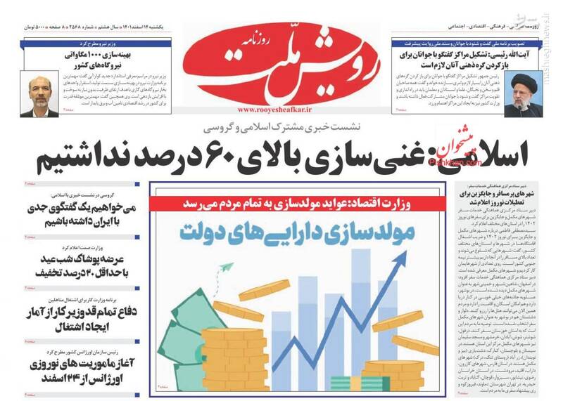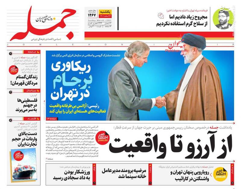 صفحه اول روزنامههای یکشنبه چهاردهم اسفند ماه ۱۴۰۱