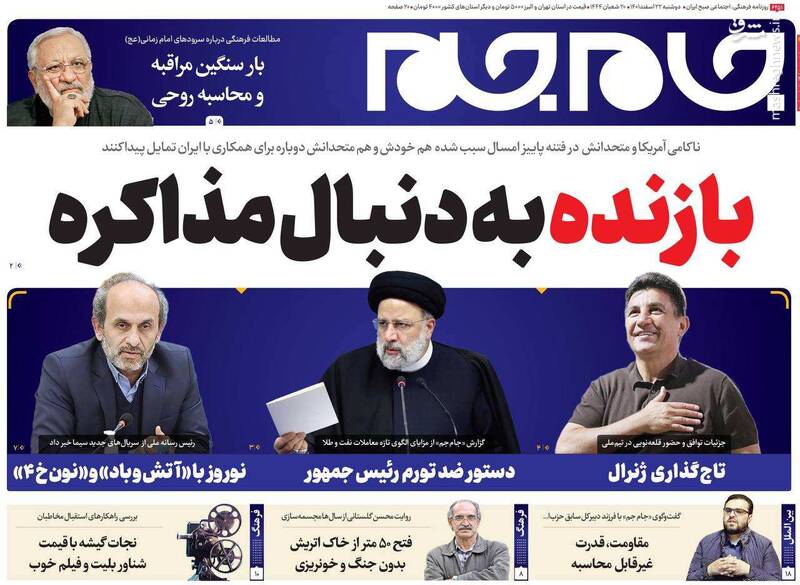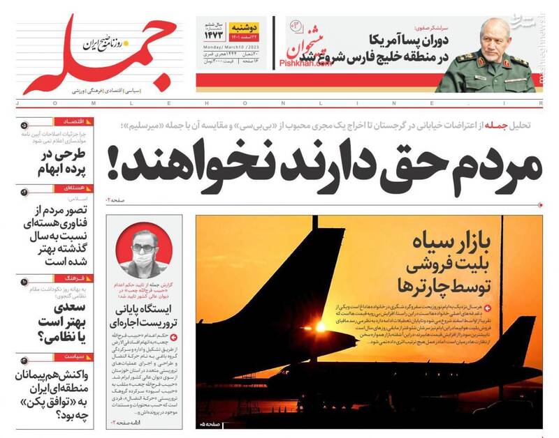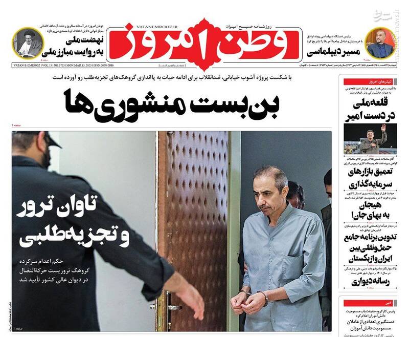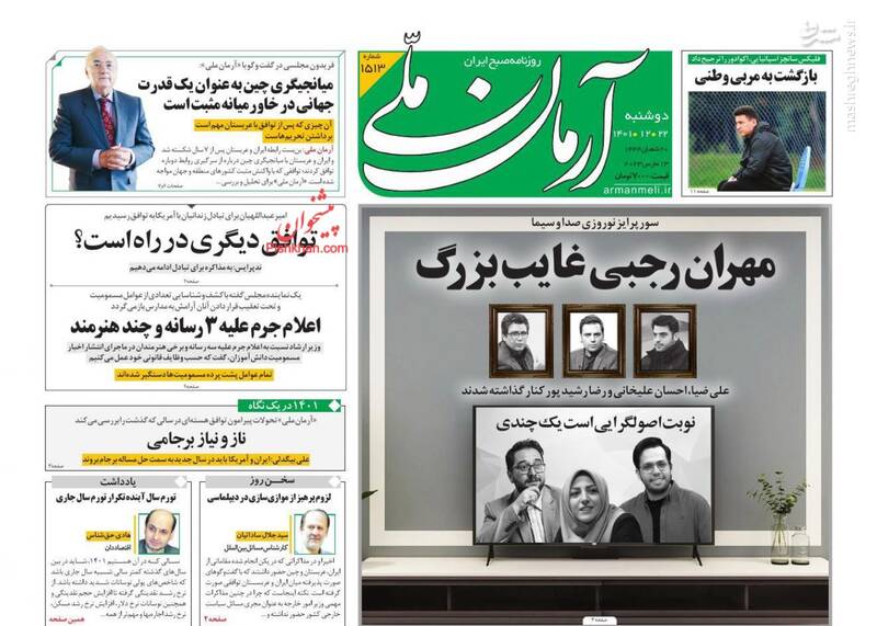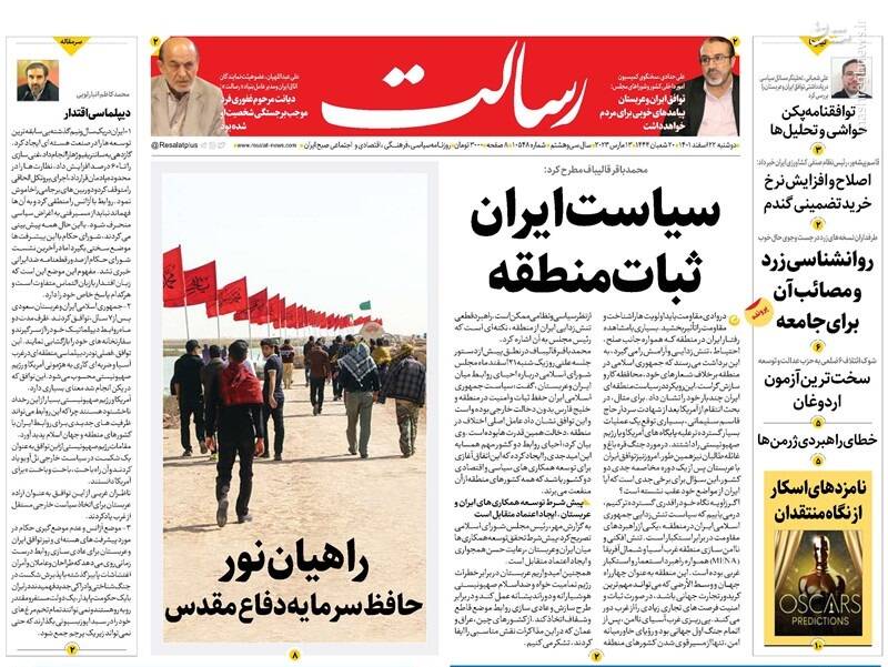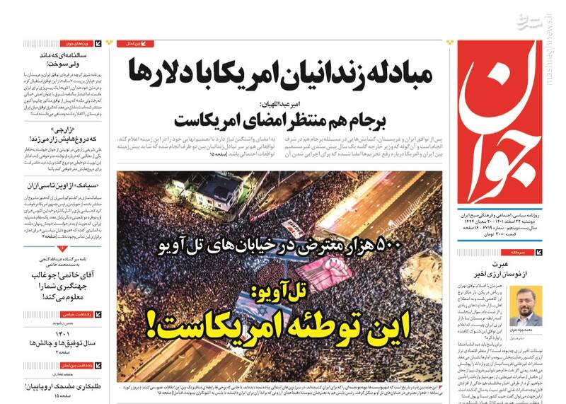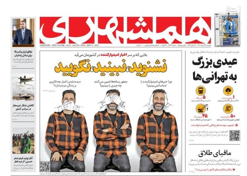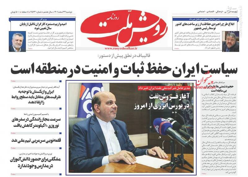 صفحه اول روزنامههای دوشنبه ۲۲ اسفند ماه ۱۴۰۱