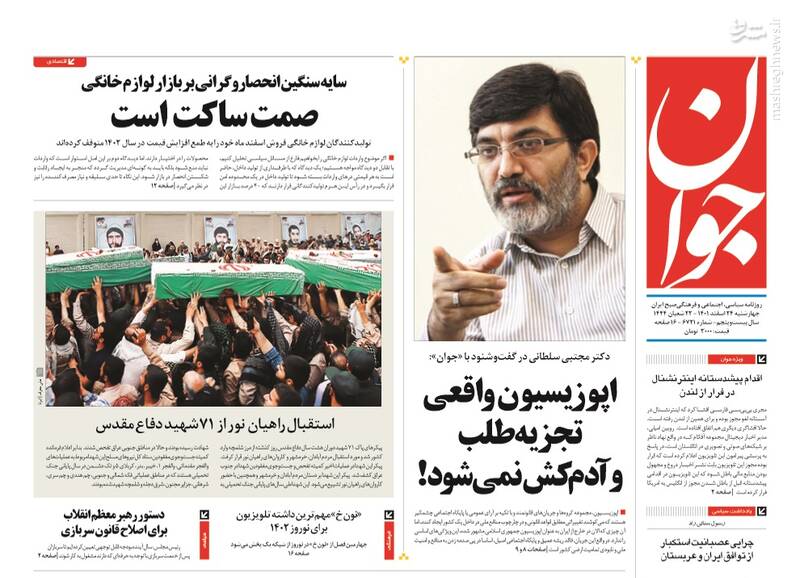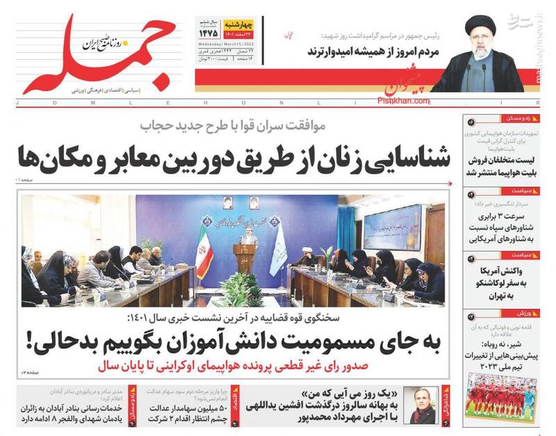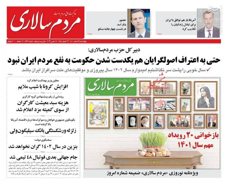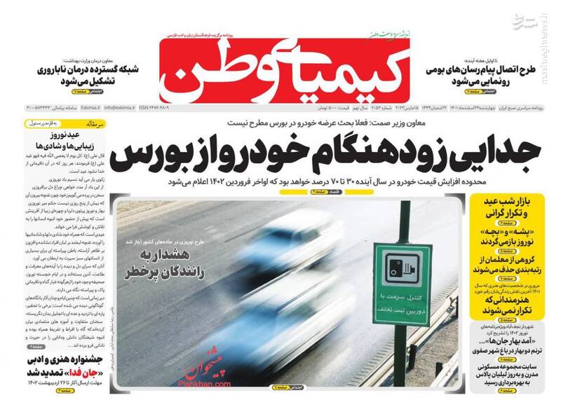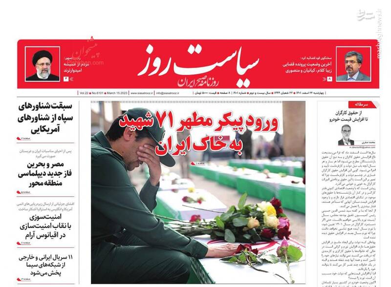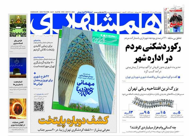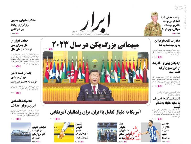 صفحه اول روزنامه‌های چهارشنبه ۲۴ اسفند ماه ۱۴۰۱