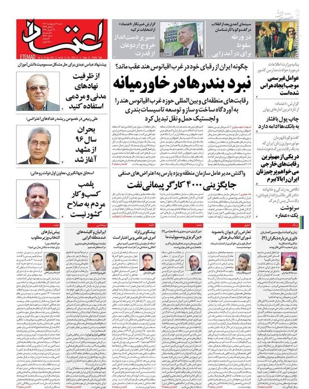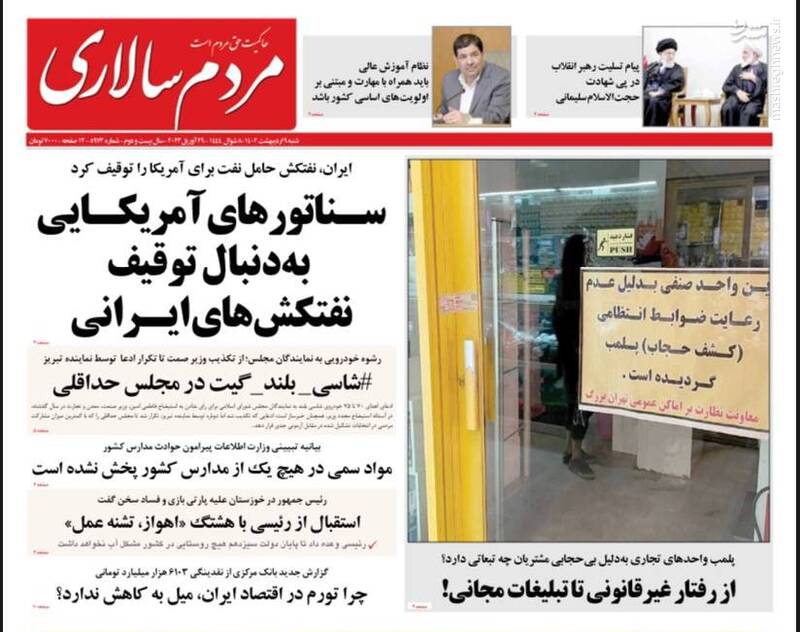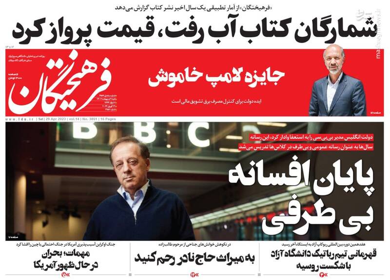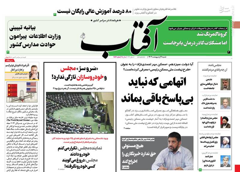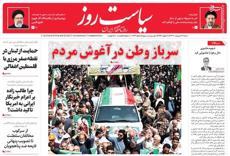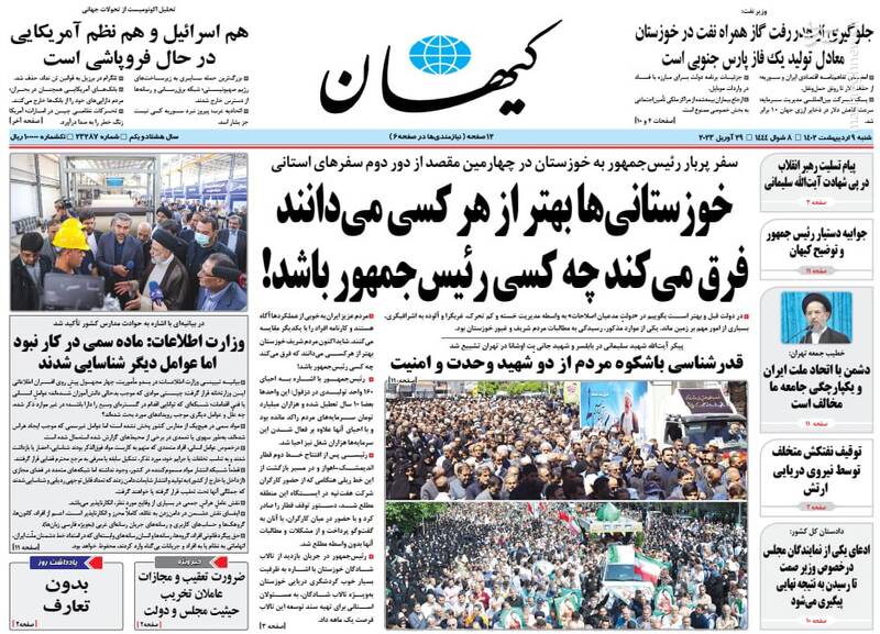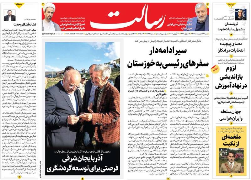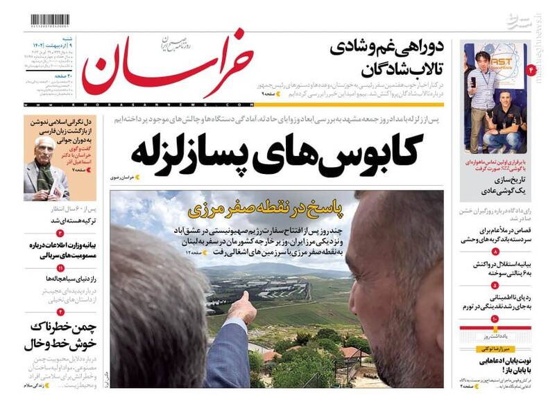صفحه اول روزنامههای شنبه ۹ اردیبهشت ماه ۱۴۰۲