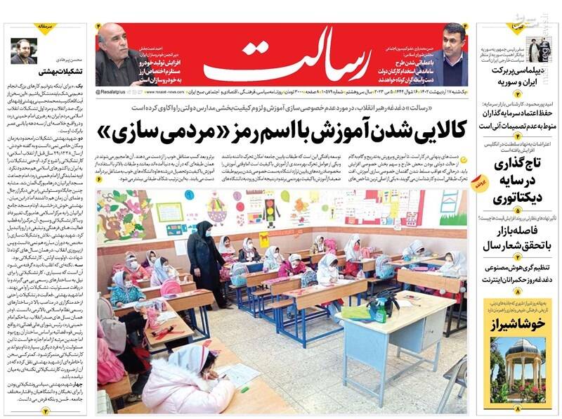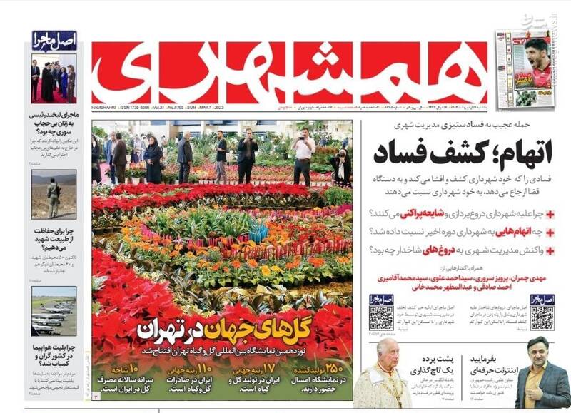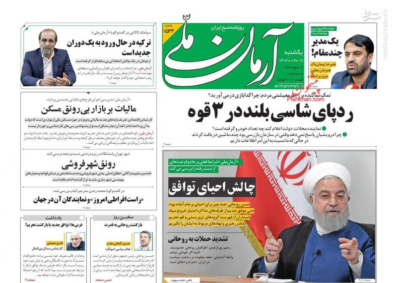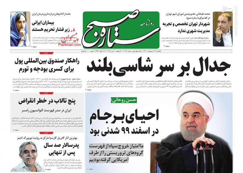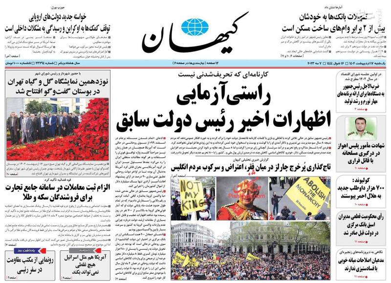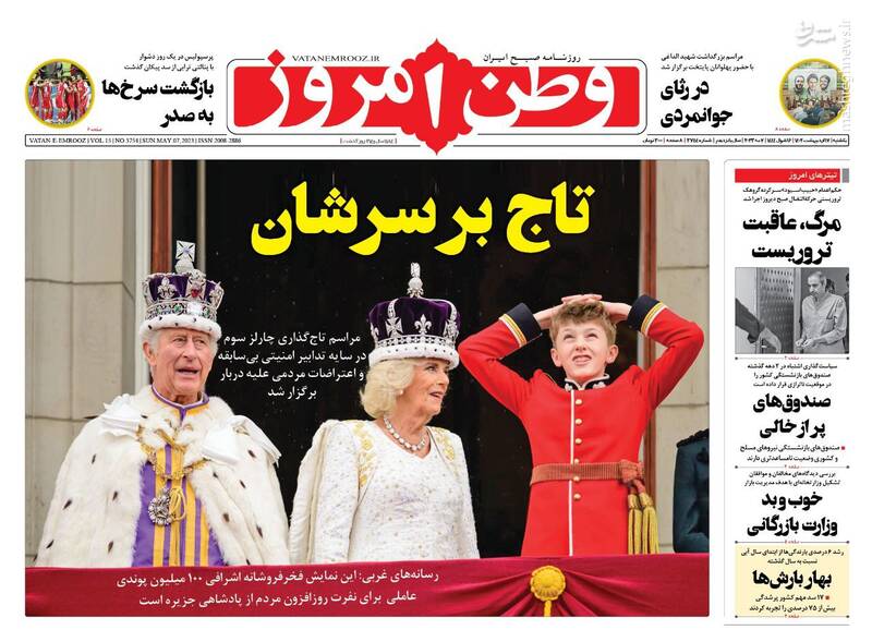 صفحه اول روزنامههای یکشنبه ۱۷ اردیبهشت ۱۴۰۲
