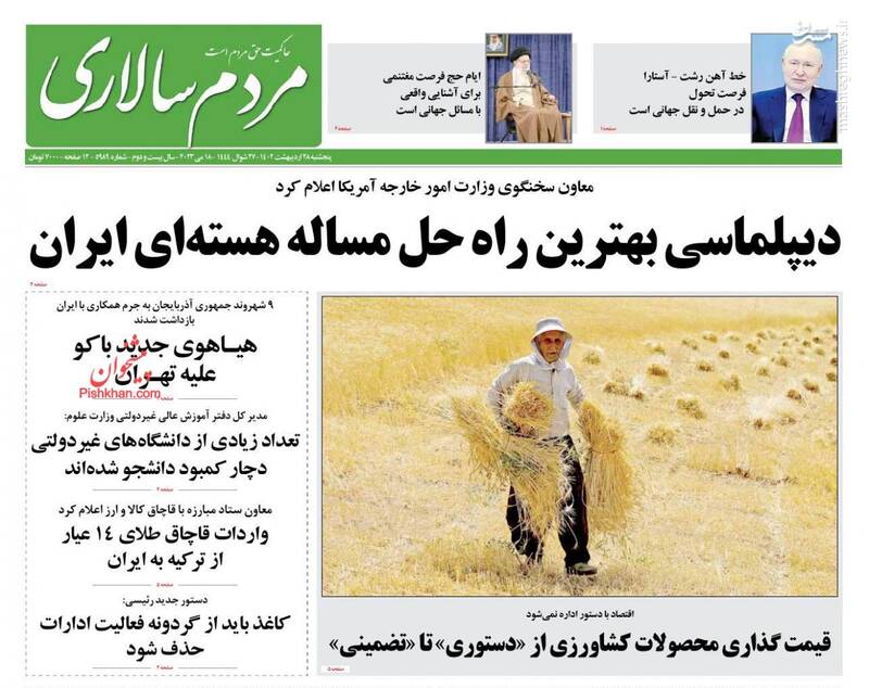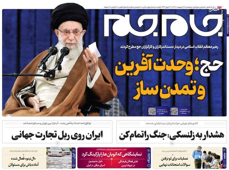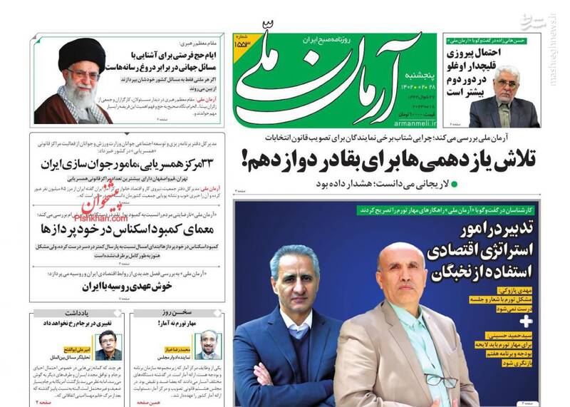 صفحه اول روزنامه های پنجشنبه ۲۸ اردیبهشت ۱۴۰۲