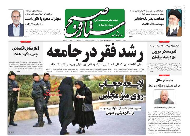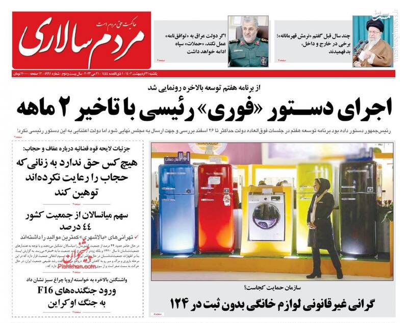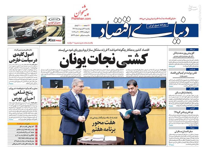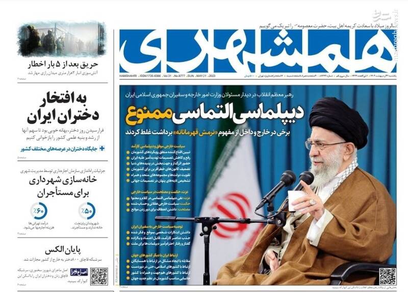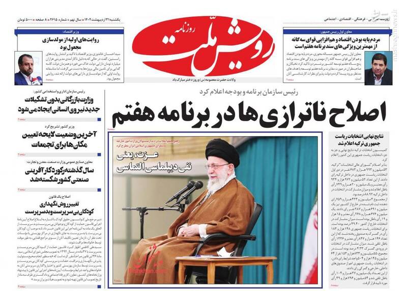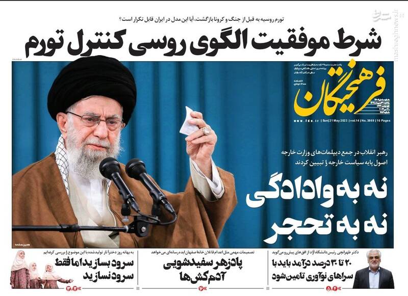 صفحه اول روزنامه های یکشنبه ۳۱ اردیبهشت ۱۴۰۲