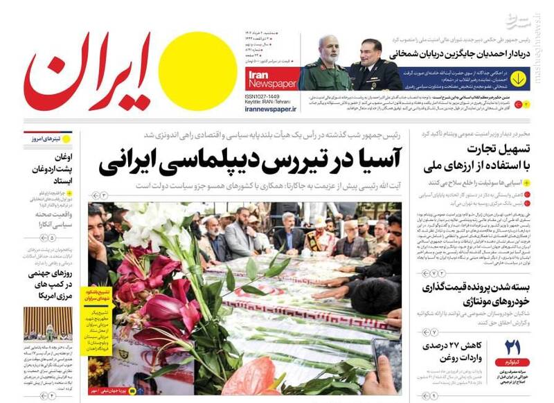 صفحه اول روزنامههای سهشنبه ۲ خرداد ۱۴۰۲