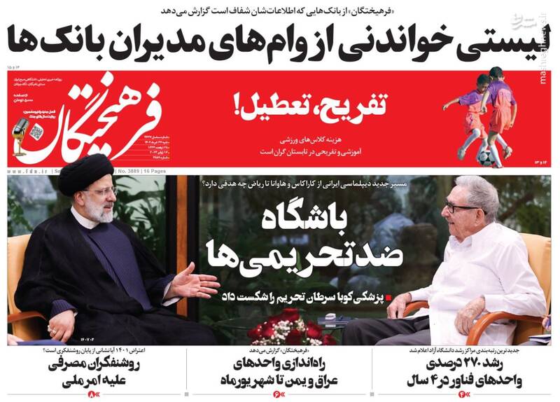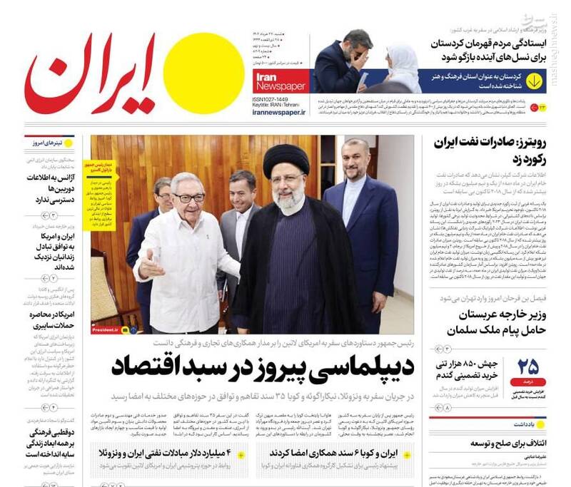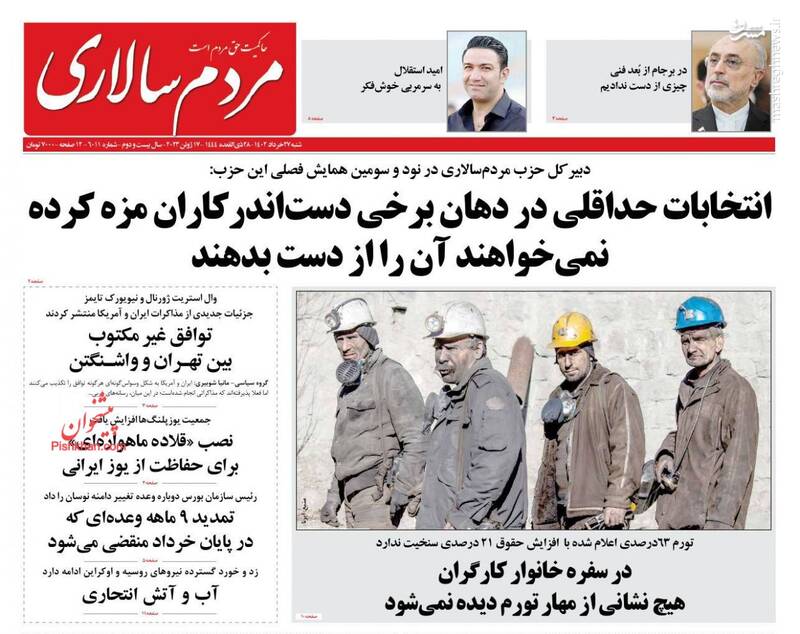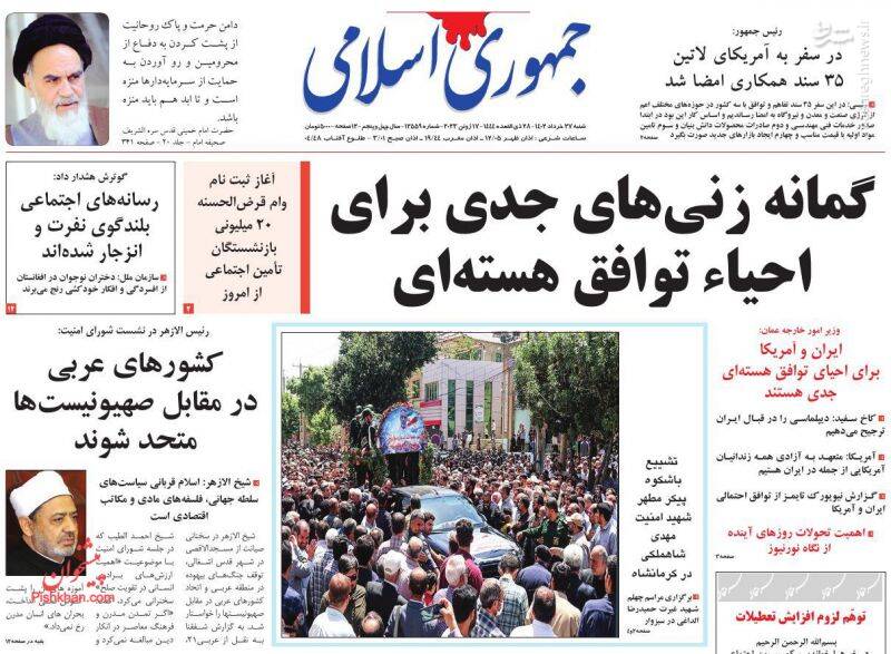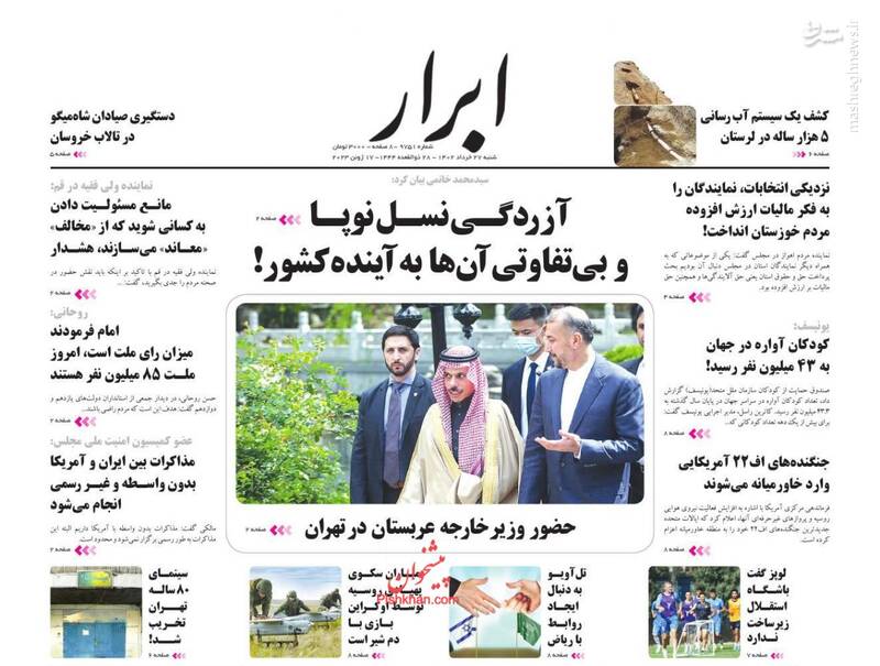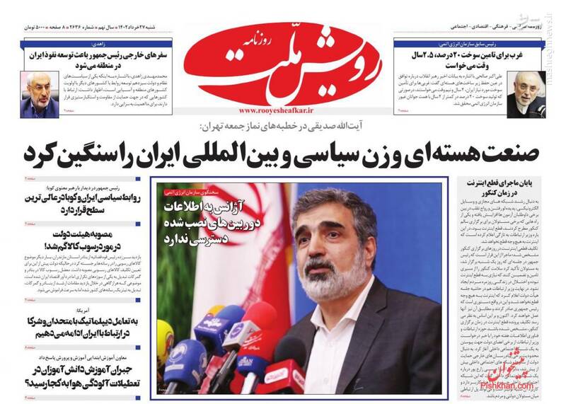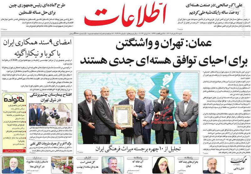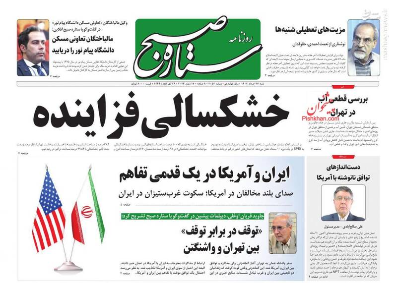 صفحه اول روزنامههای شنبه ۲۷ خرداد ۱۴۰۲