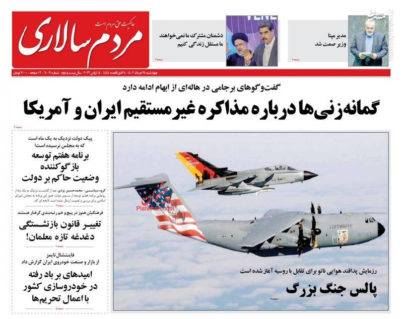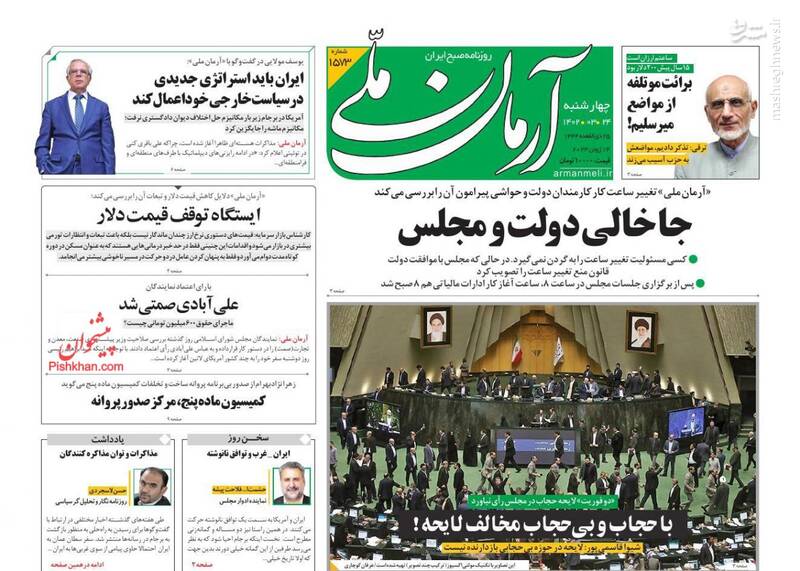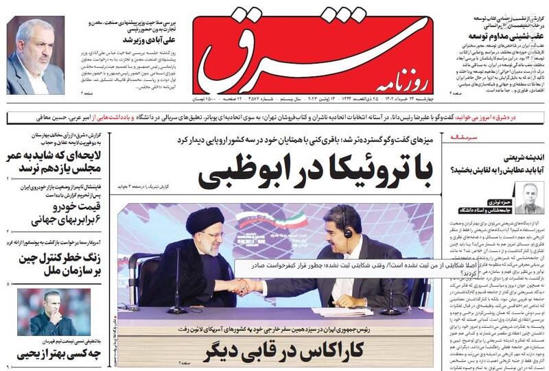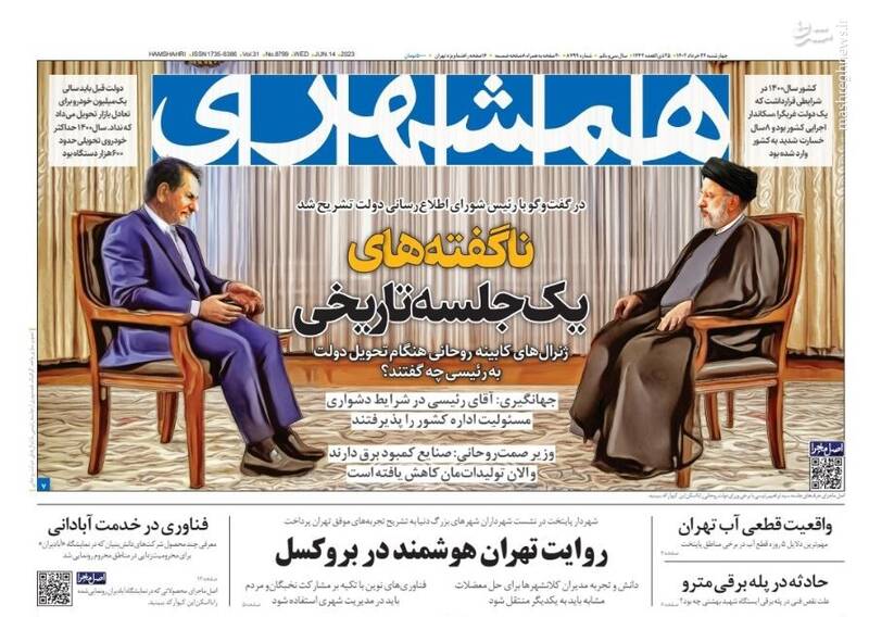 صفحه اول روزنامههای چهارشنبه ۲۴ خرداد ۱۴۰۲