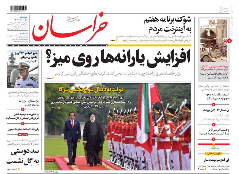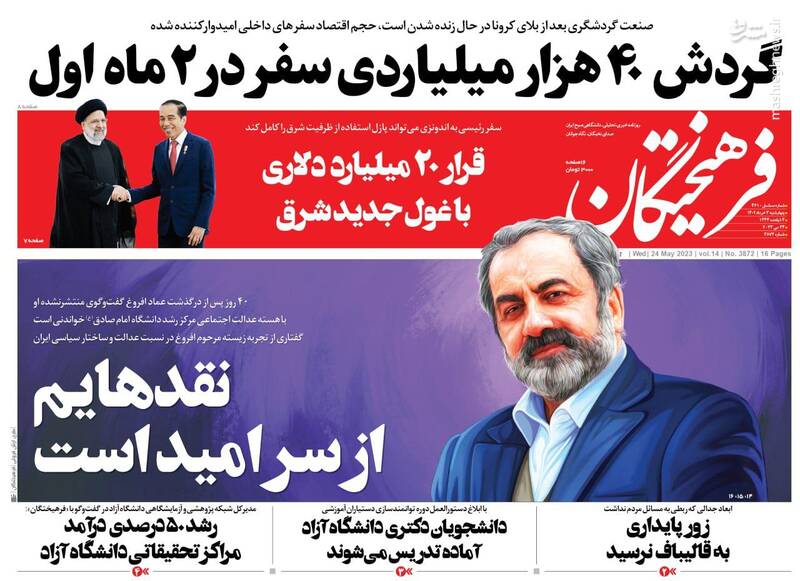 صفحه اول روزنامههای چهارشنبه ۳ خرداد ۱۴۰۲