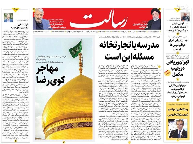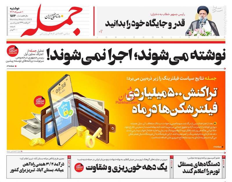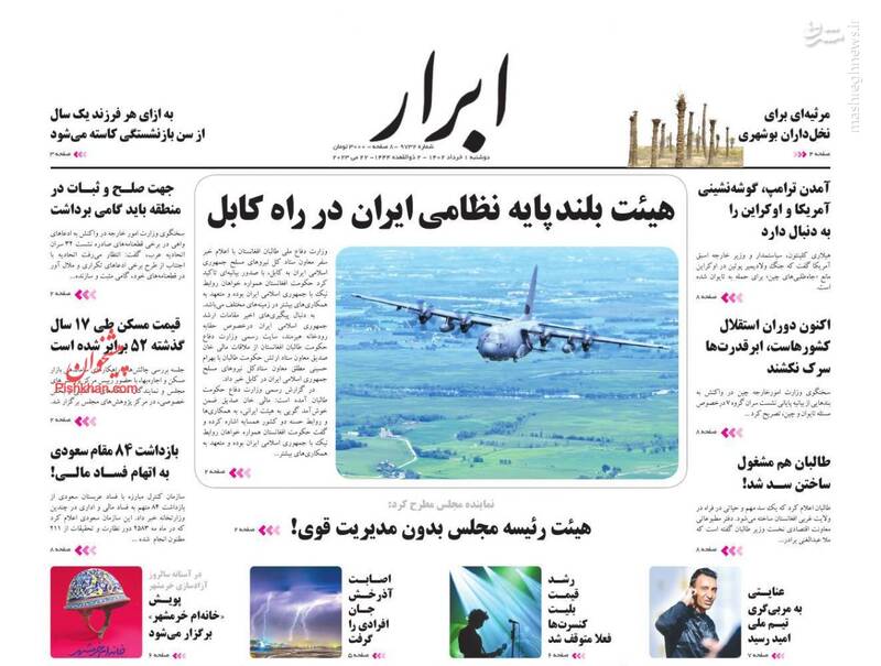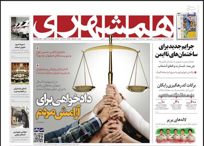 صفحه اول روزنامه های دوشنبه اول خرداد ۱۴۰۲