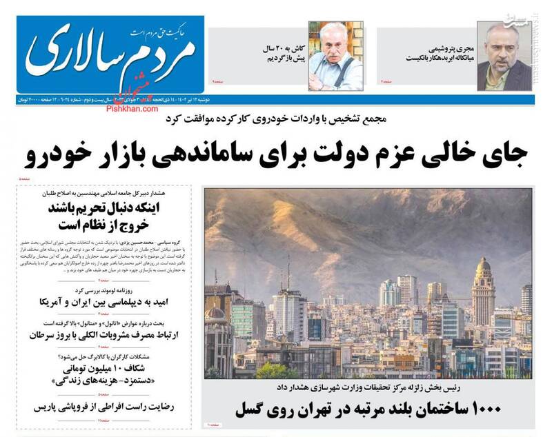 صفحه اول روزنامه‌های دوشنبه دوازدهم تیرماه ۱۴۰۲