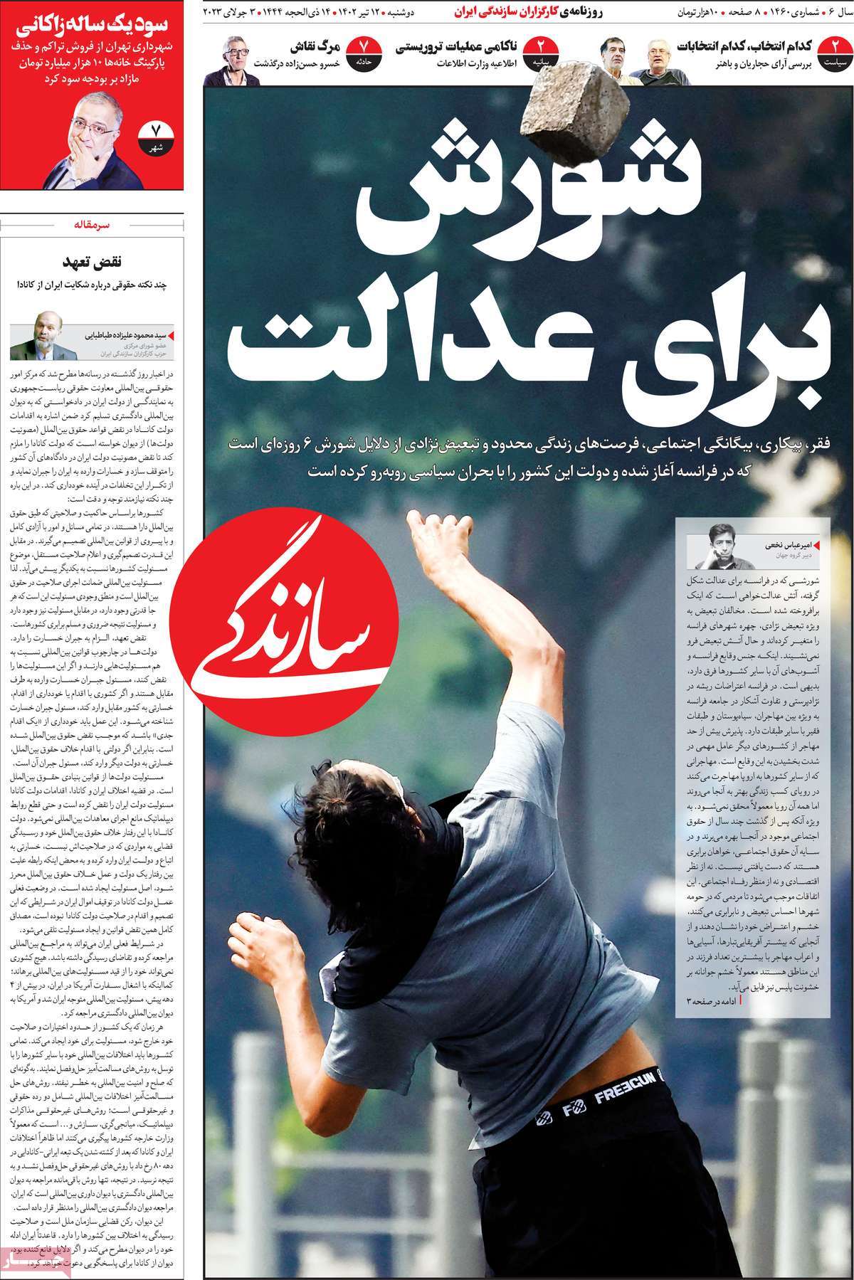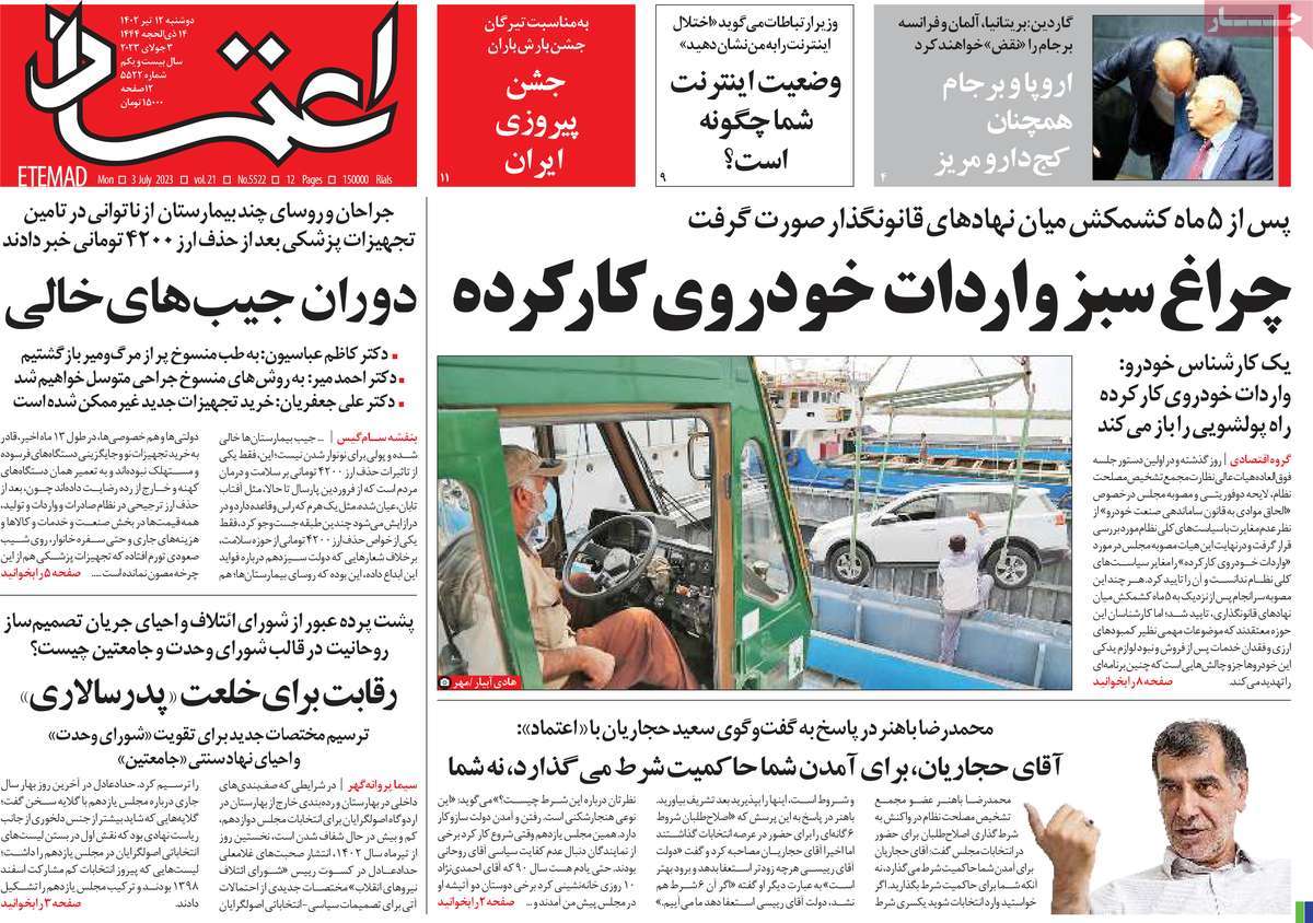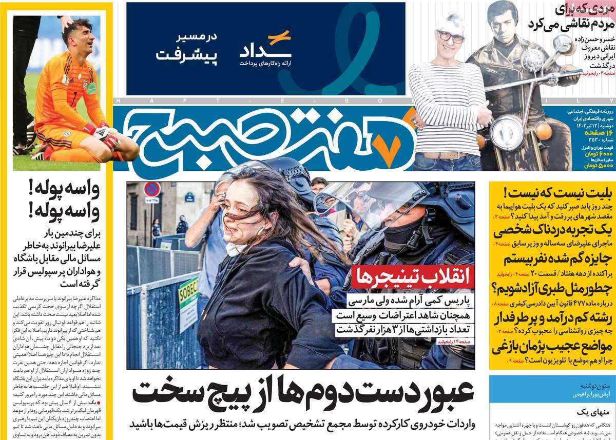 صفحه اول روزنامه‌های دوشنبه دوازدهم تیرماه ۱۴۰۲