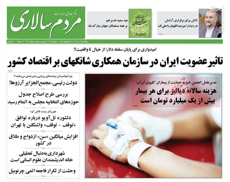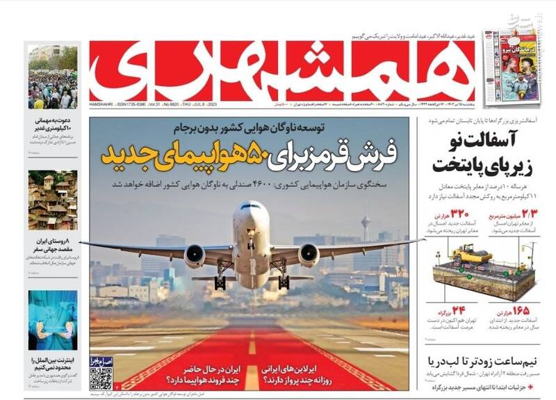 صفحه اول روزنامههای پنجشنبه ۱۵ تیرماه ۱۴۰۲