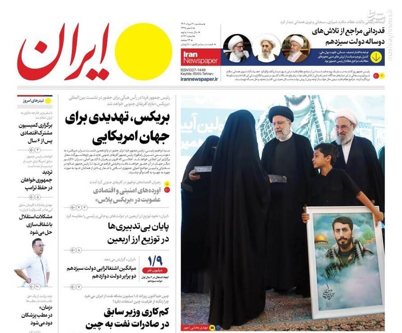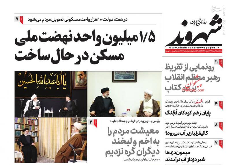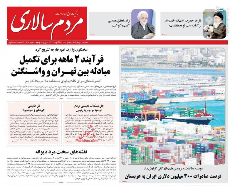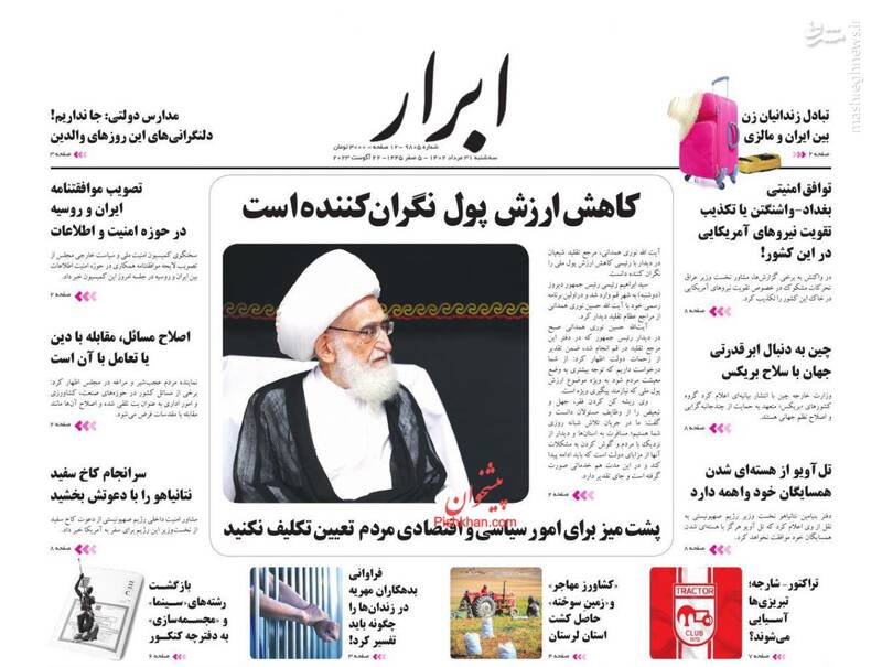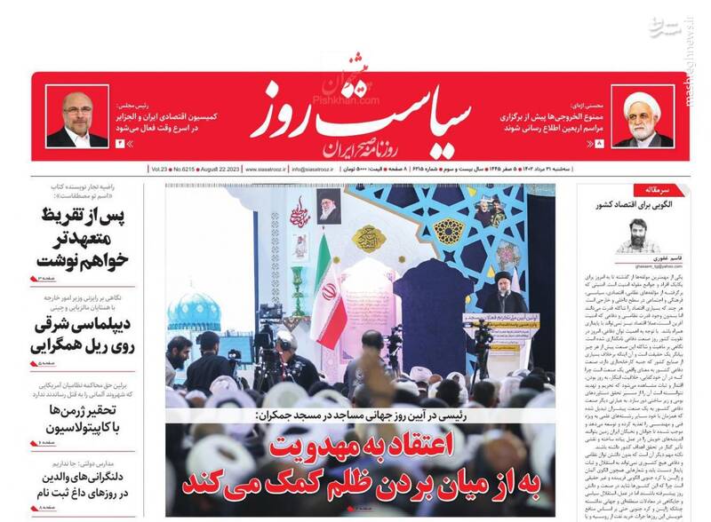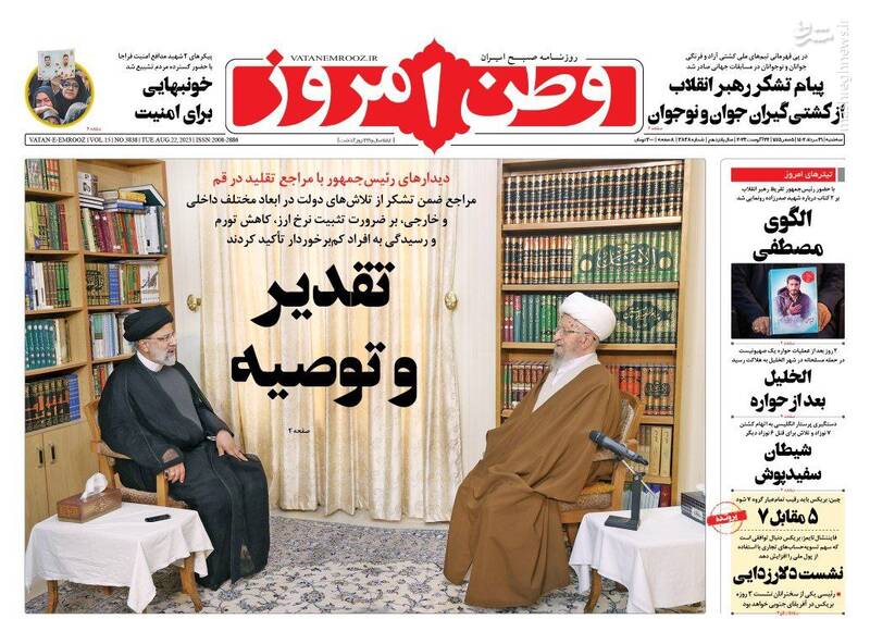صفحه اول روزنامههای سهشنبه ۳۱ مرداد ۱۴۰۲