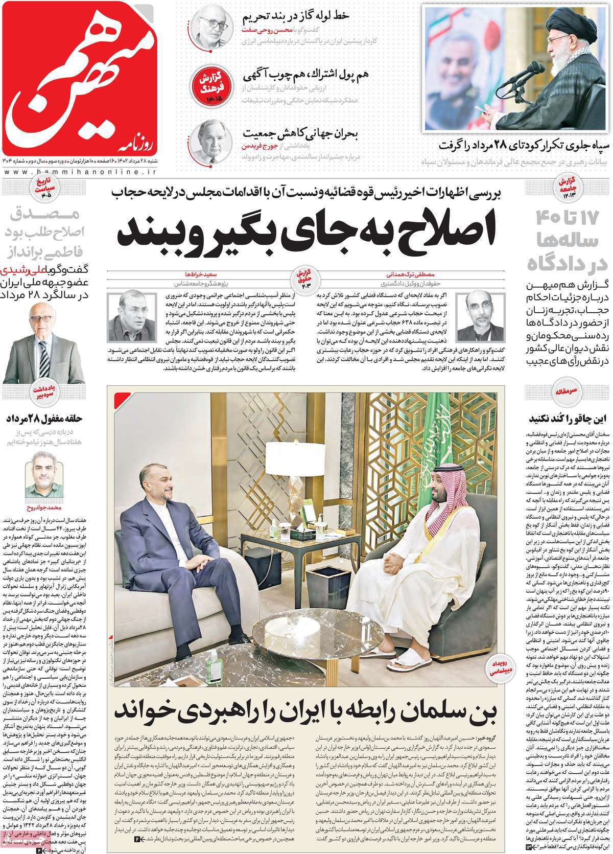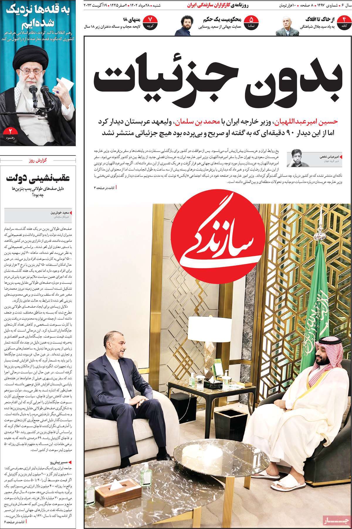 صفحه اول روزنامههای شنبه ۲۸ مرداد ۱۴۰۲