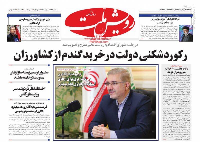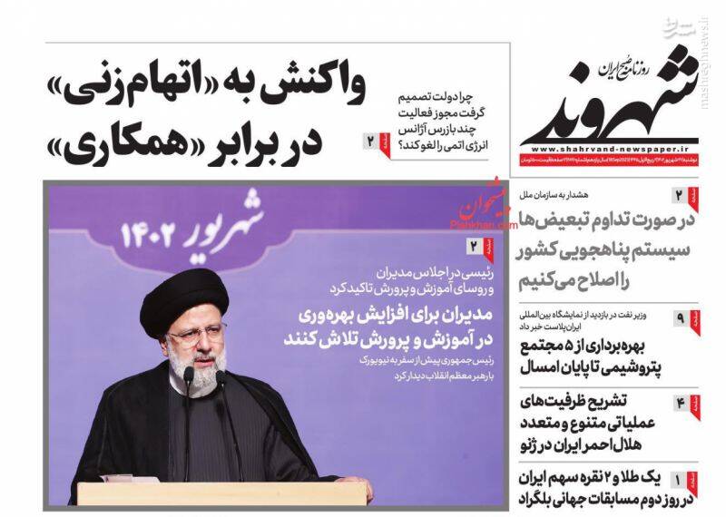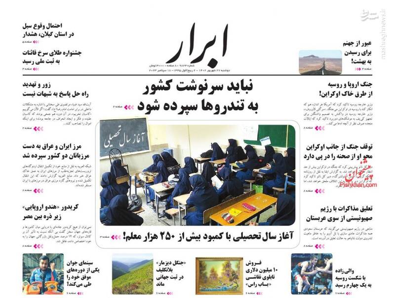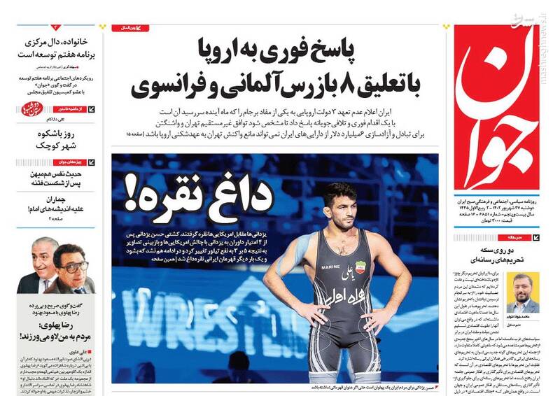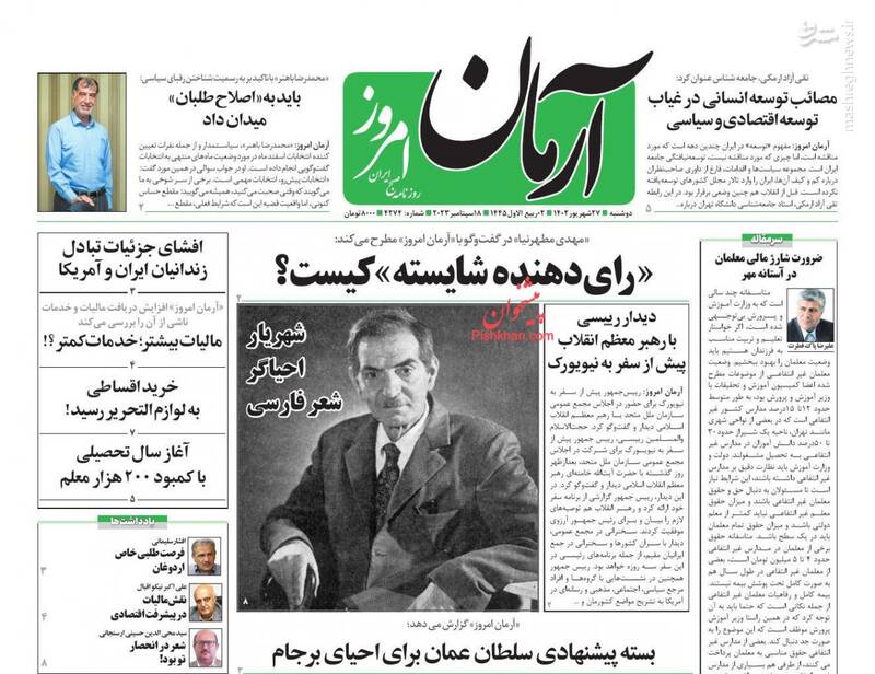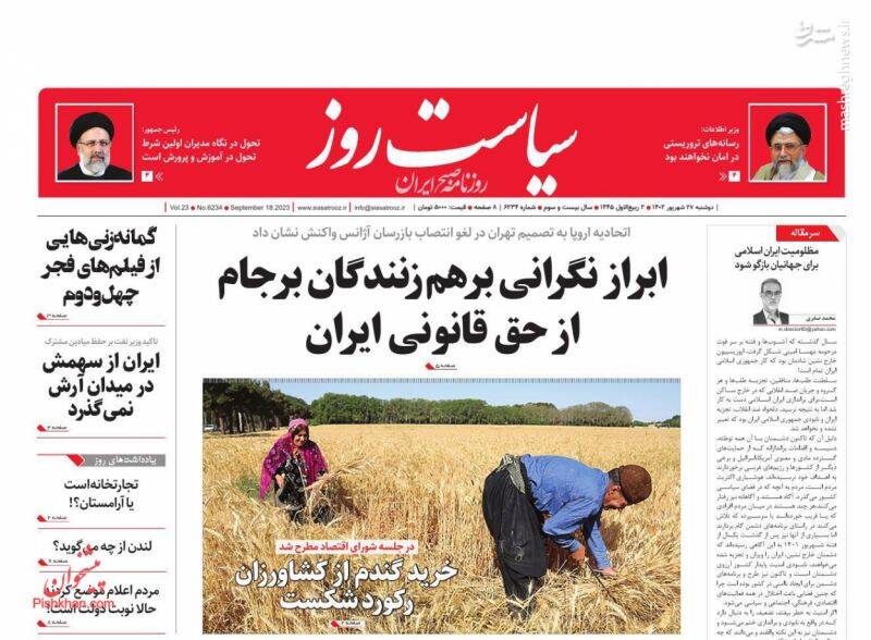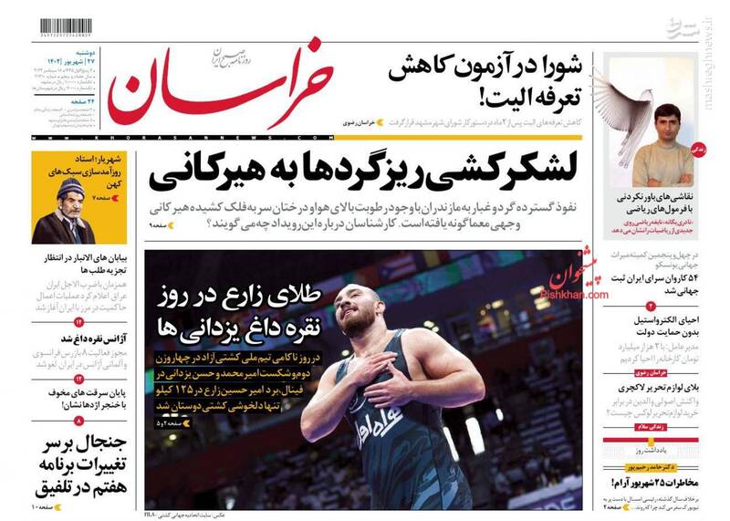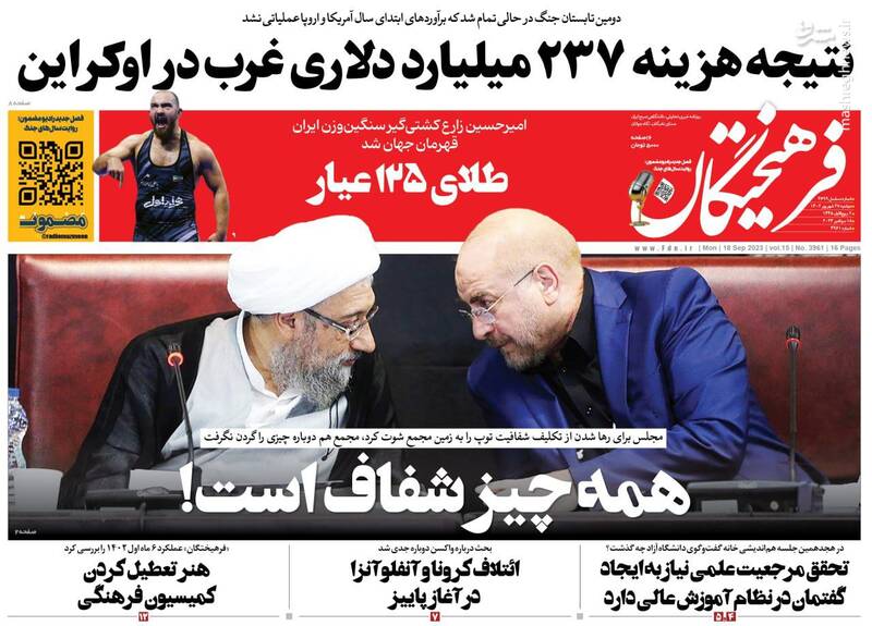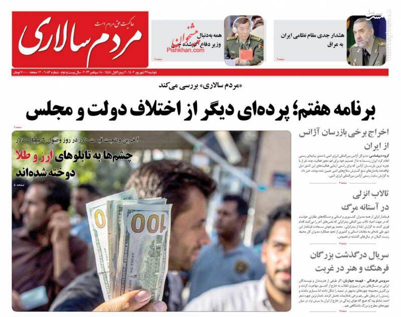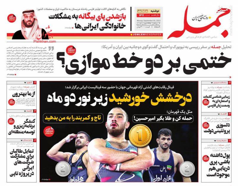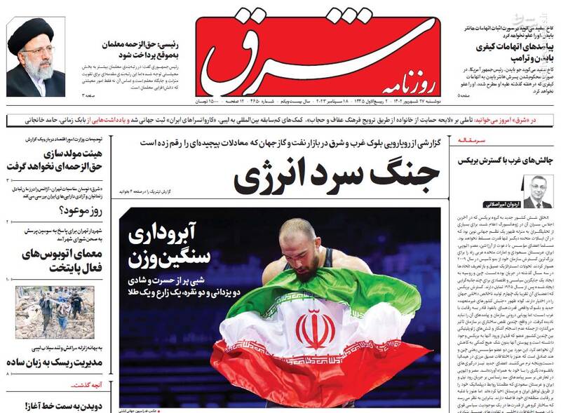 صفحه اول روزنامههای دوشنبه ۲۷ شهریور ۱۴۰۲