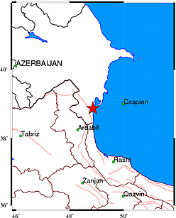 محل وقوع این زمین لرزه کشور جمهوری آذربایجان است که در ساعت ۰۰:۵۳:۵۴ به طول جغرافیایی ۴۸.۸۶۳و عرض جغرافیایی ۳۵.۷۳۹ رخ داد.