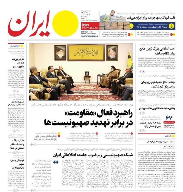 صفحه اول روزنامههای شنبه ۱۱ شهریور ۱۴۰۲