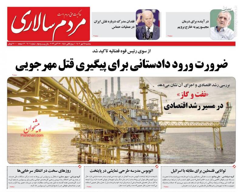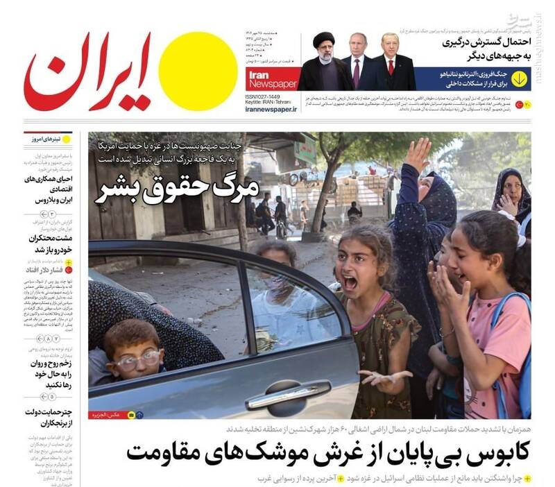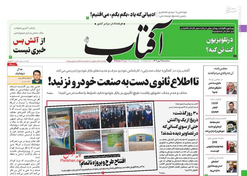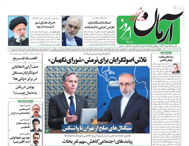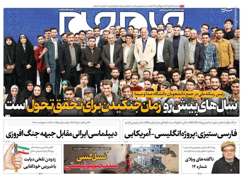 صفحه اول روزنامههای سه شنبه ۲۵ مهر ماه ۱۴۰۲