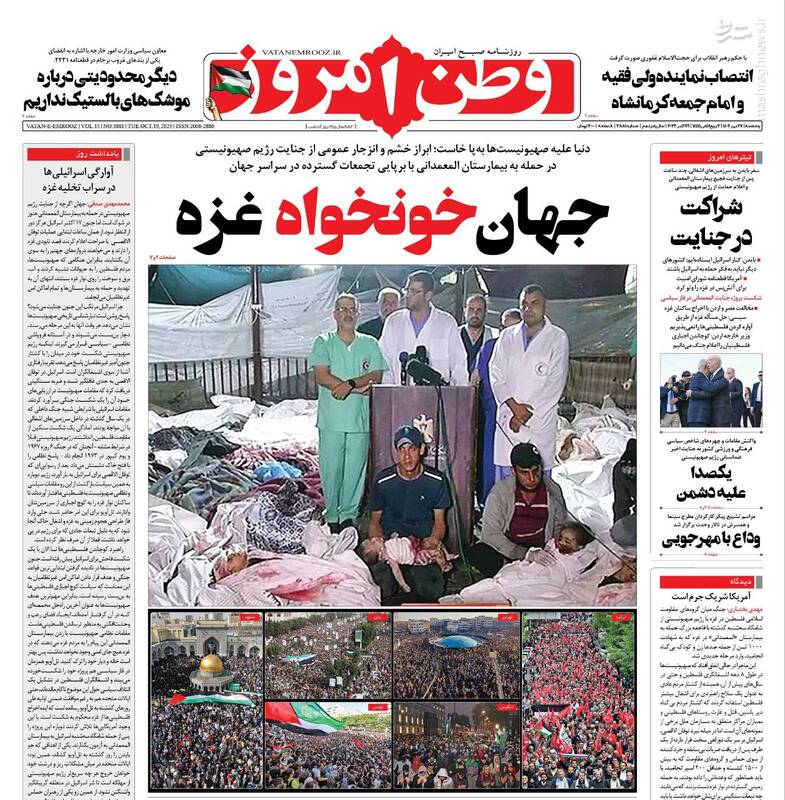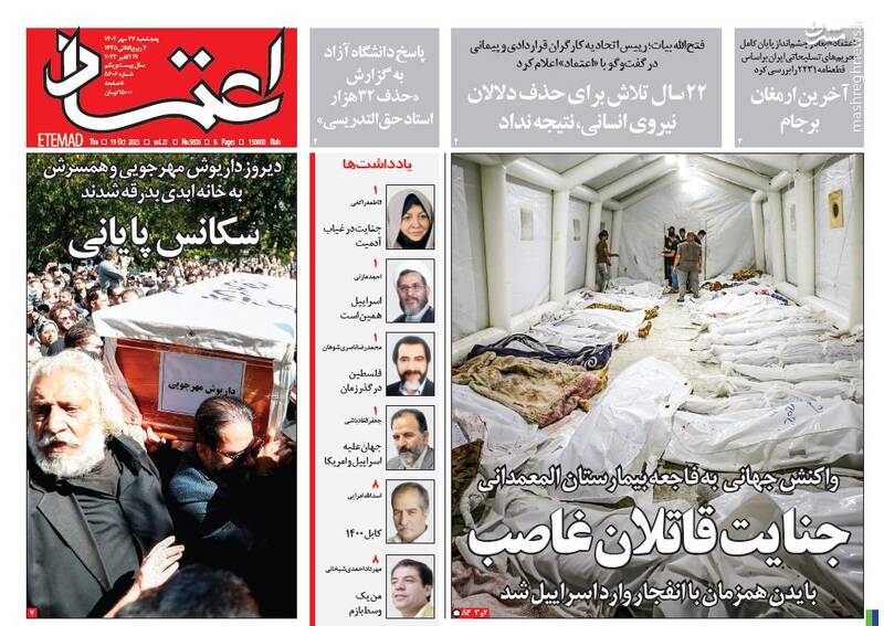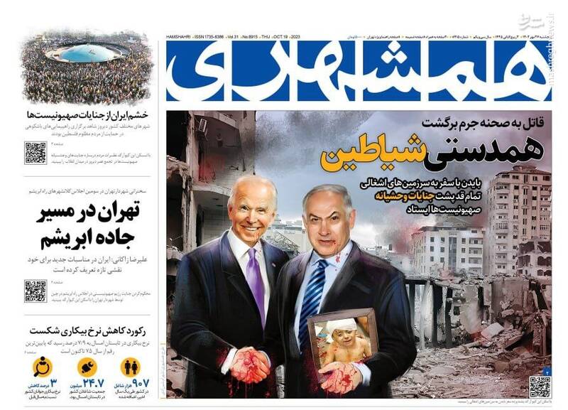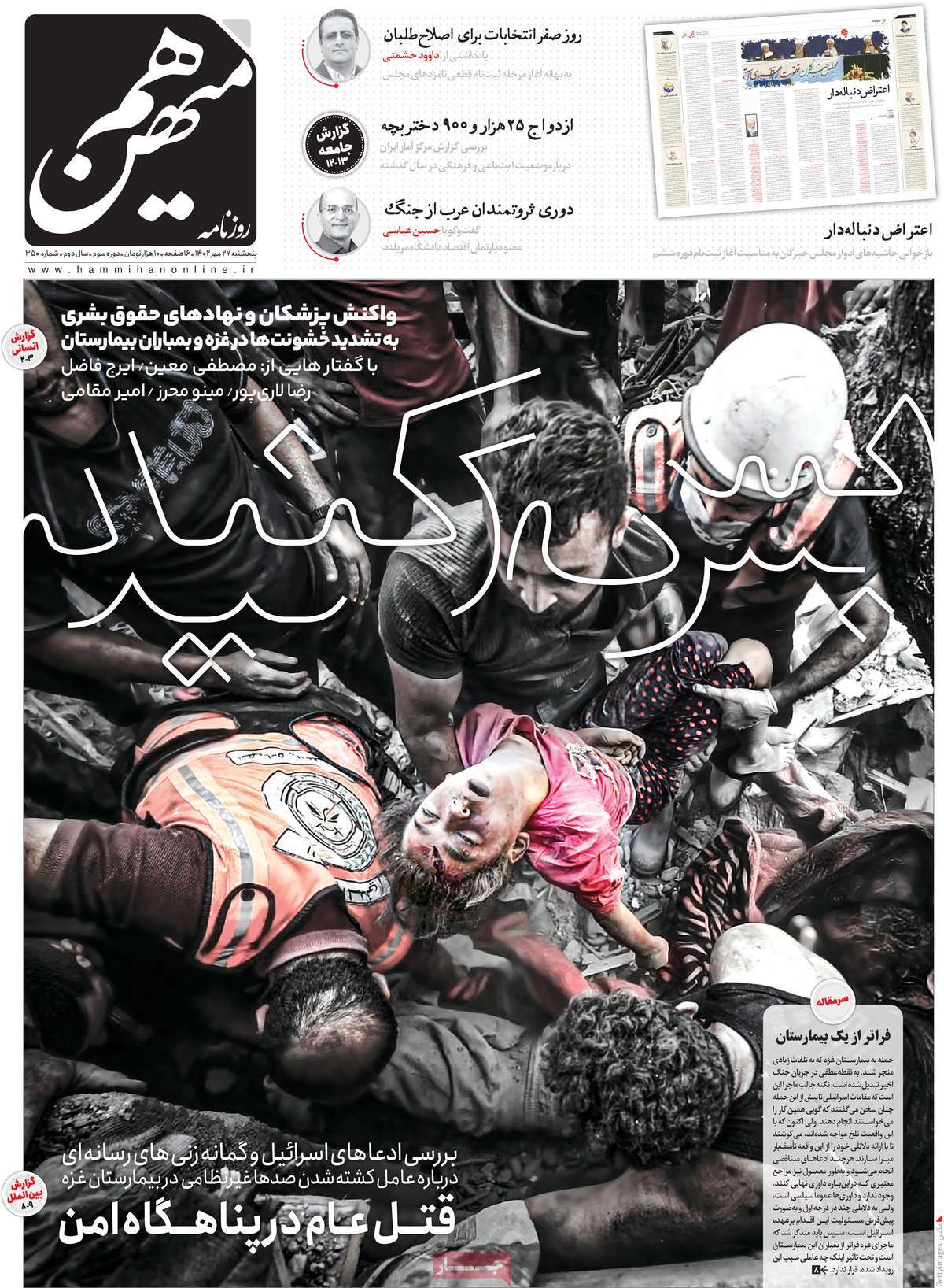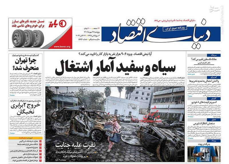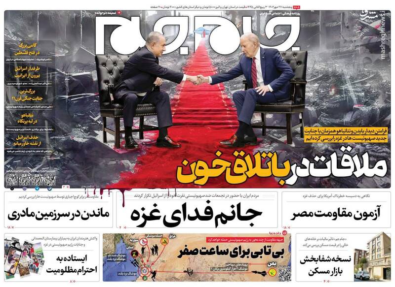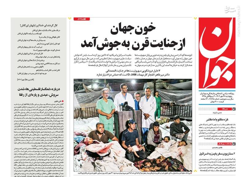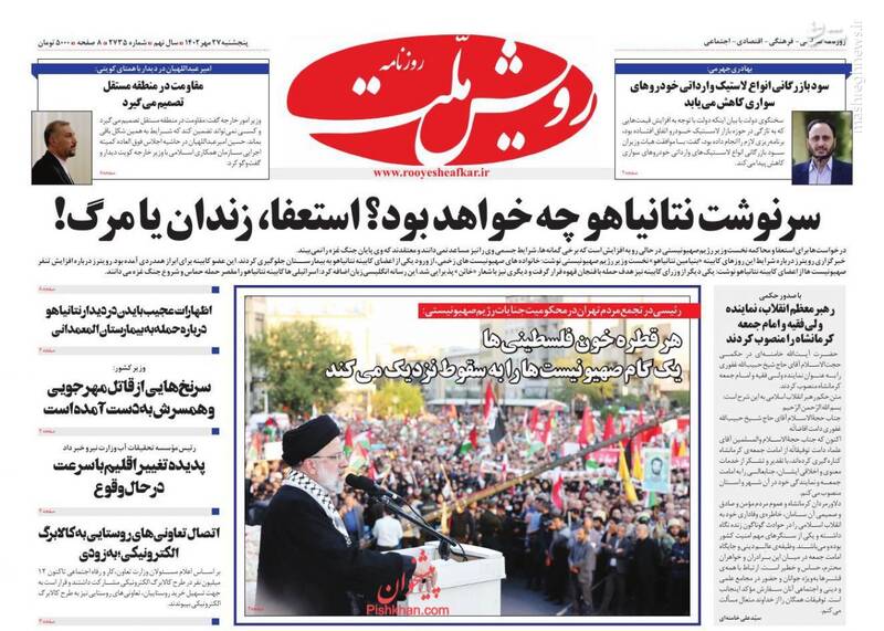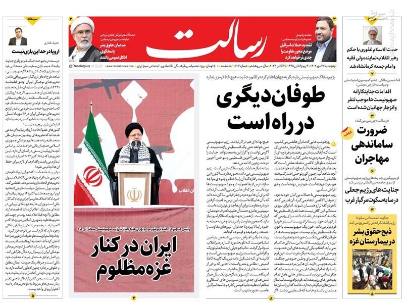صفحه اول روزنامههای پنجشنبه ۲۷ مهر ماه ۱۴۰۲
