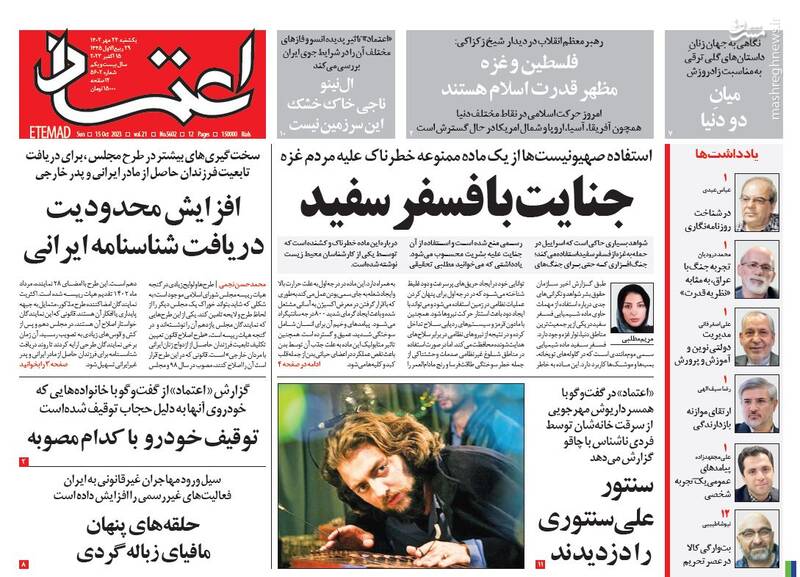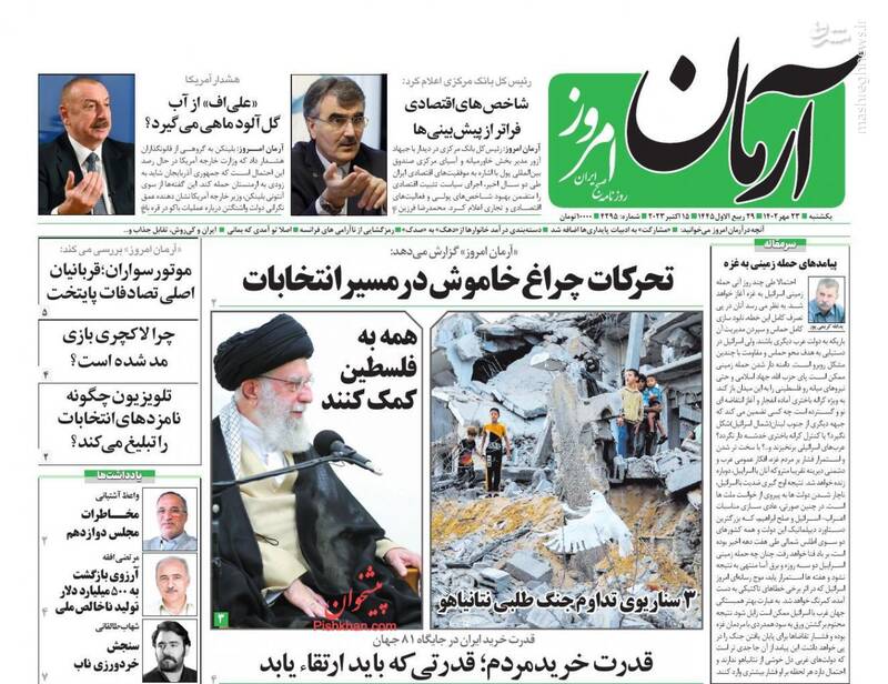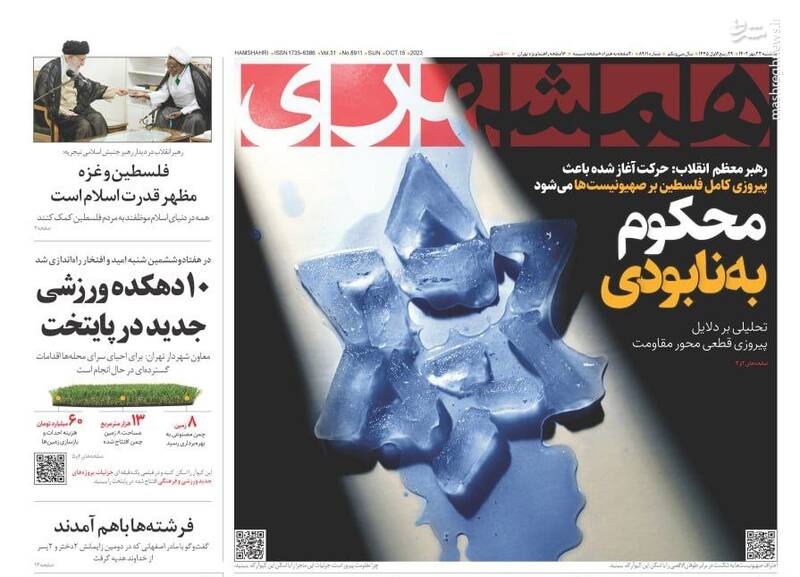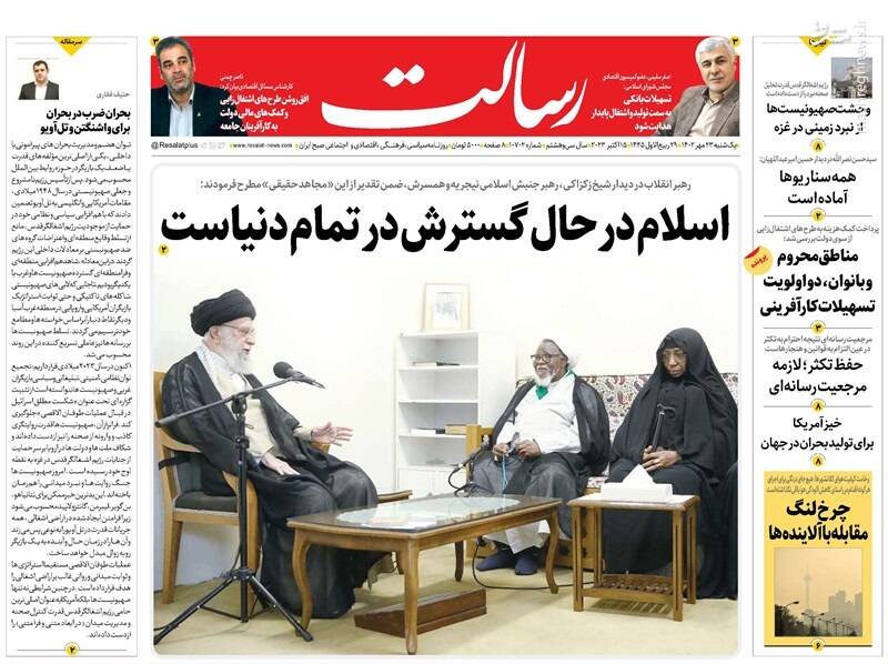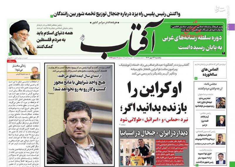 صفحه اول روزنامه های یکشنبه ۲۳ مهرماه ۱۴۰۲