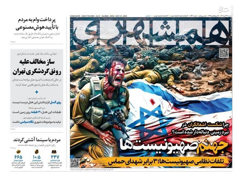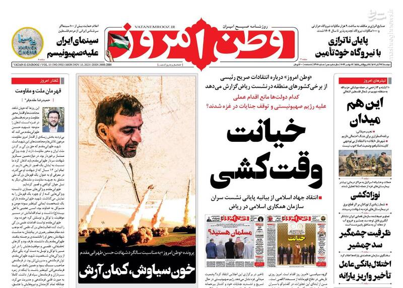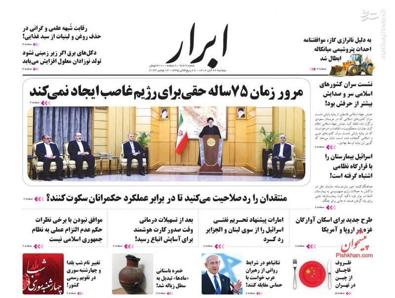 صفحه اول روزنامههای دوشنبه ۲۲ آبان ۱۴۰۲