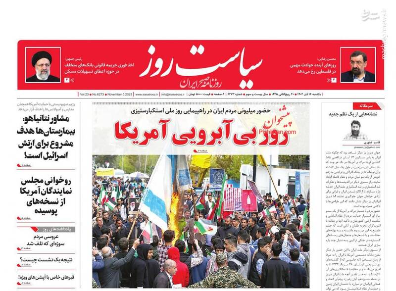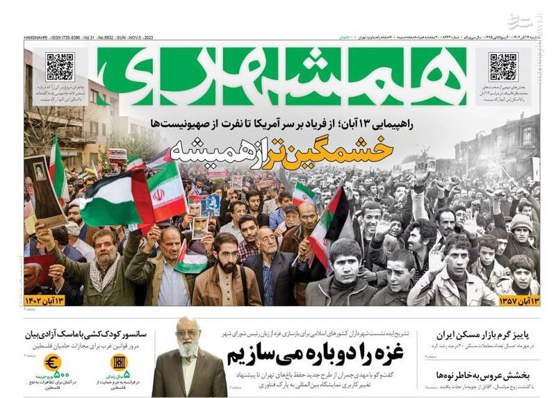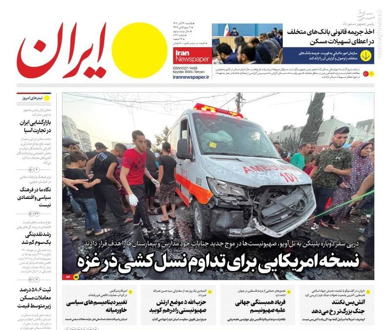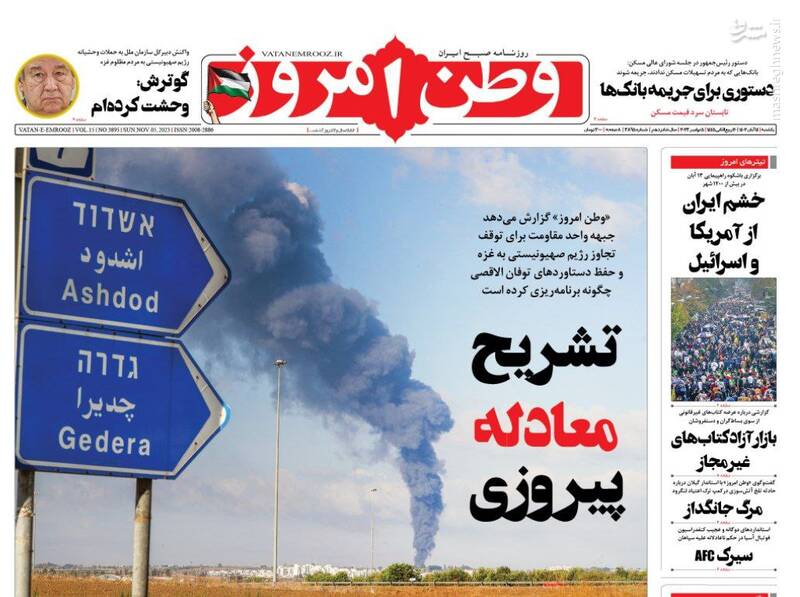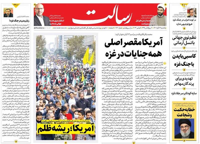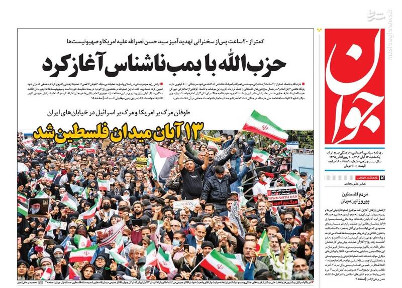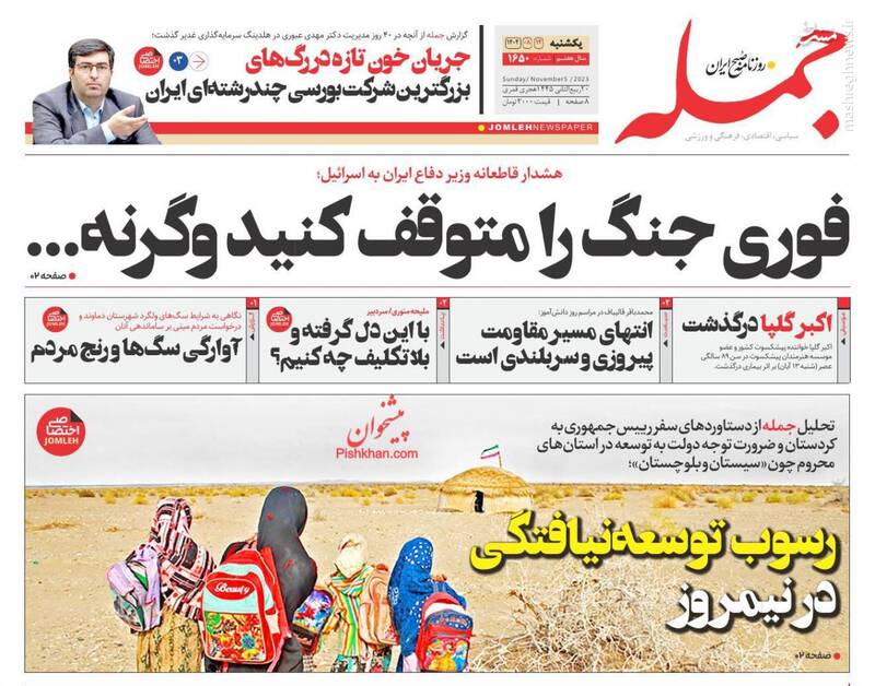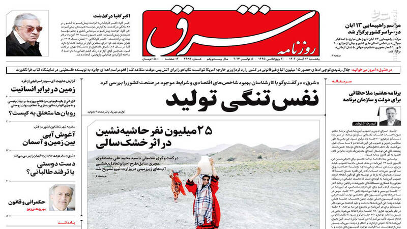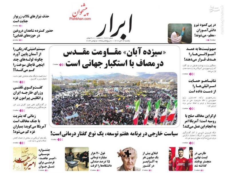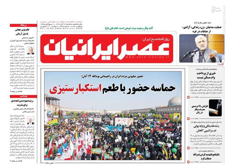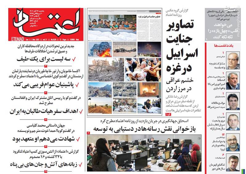 صفحه اول روزنامههای یکشنبه ۱۴ آبان ۱۴۰۲