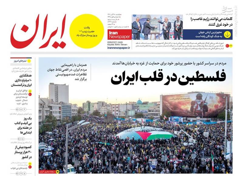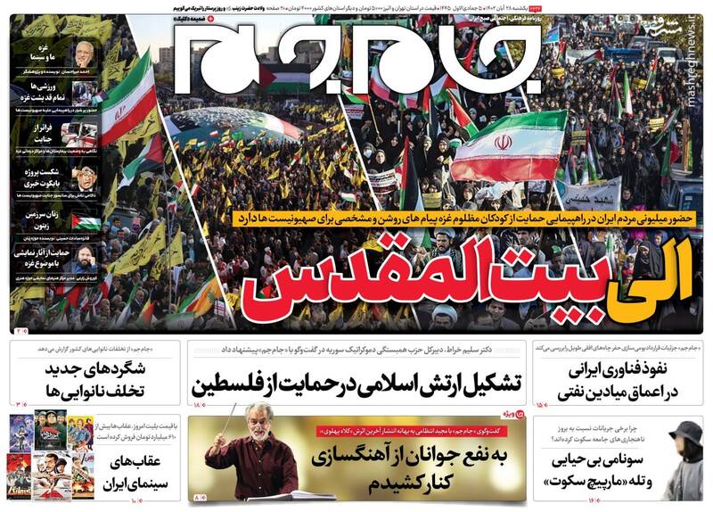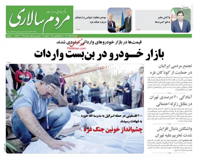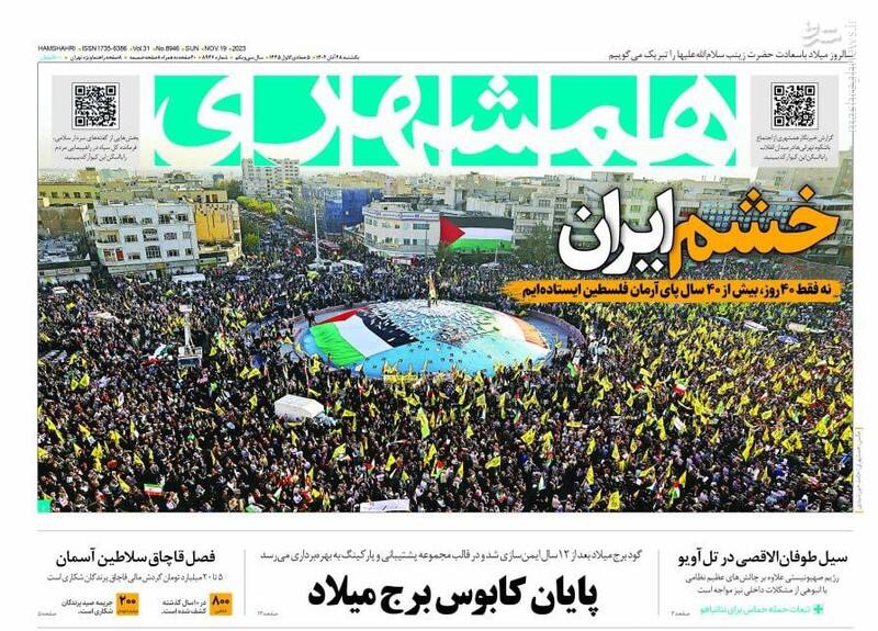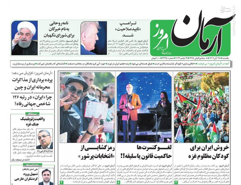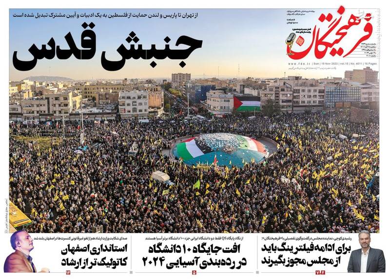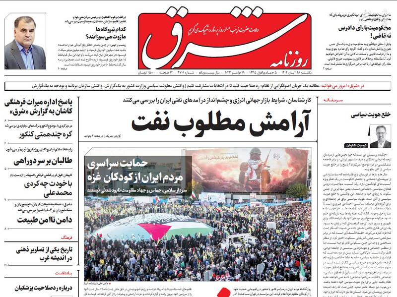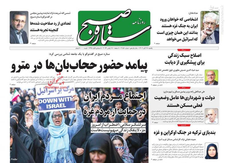 صفحه اول روزنامههای یکشنبه ۲۸ آبان ۱۴۰۲