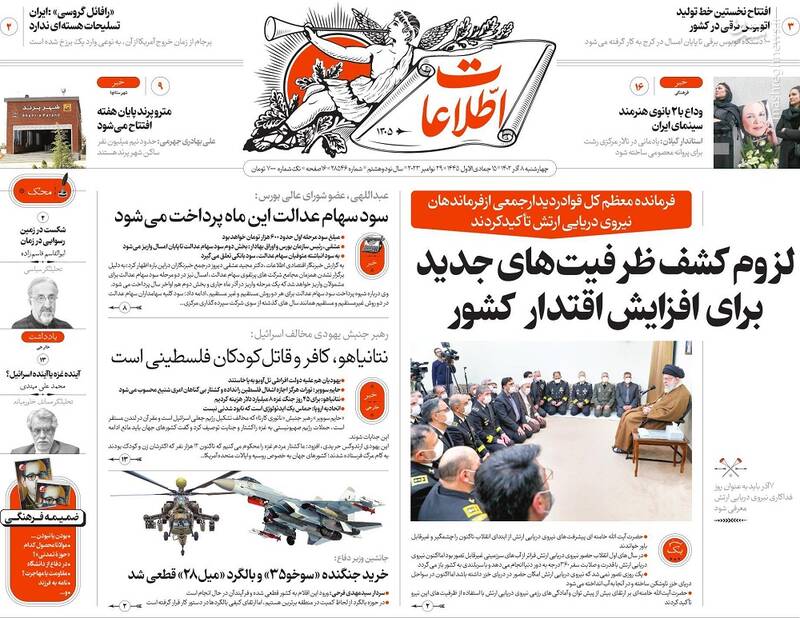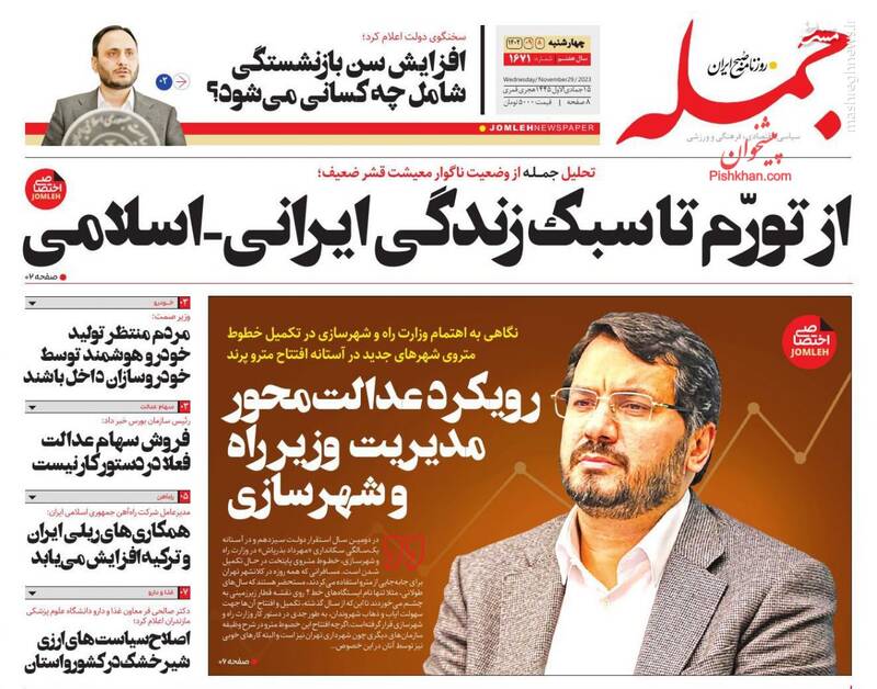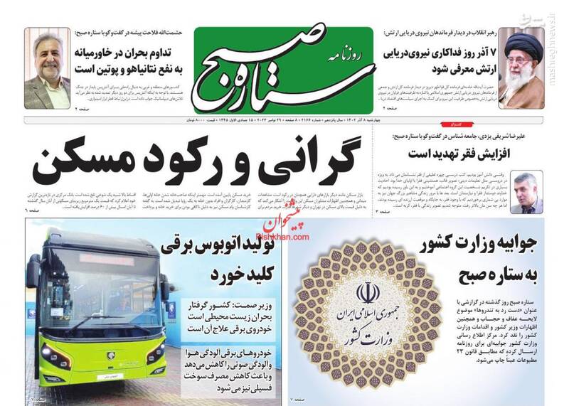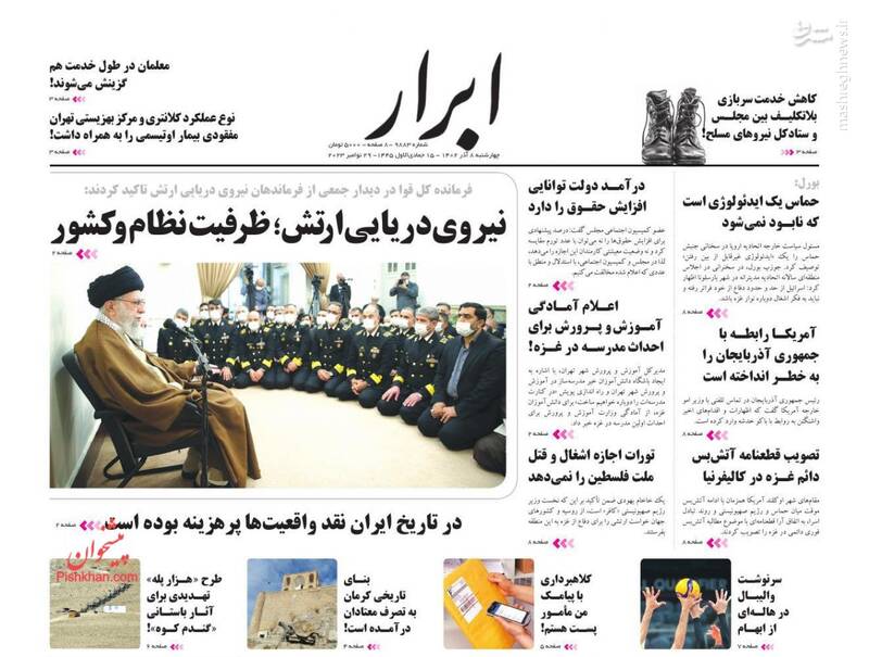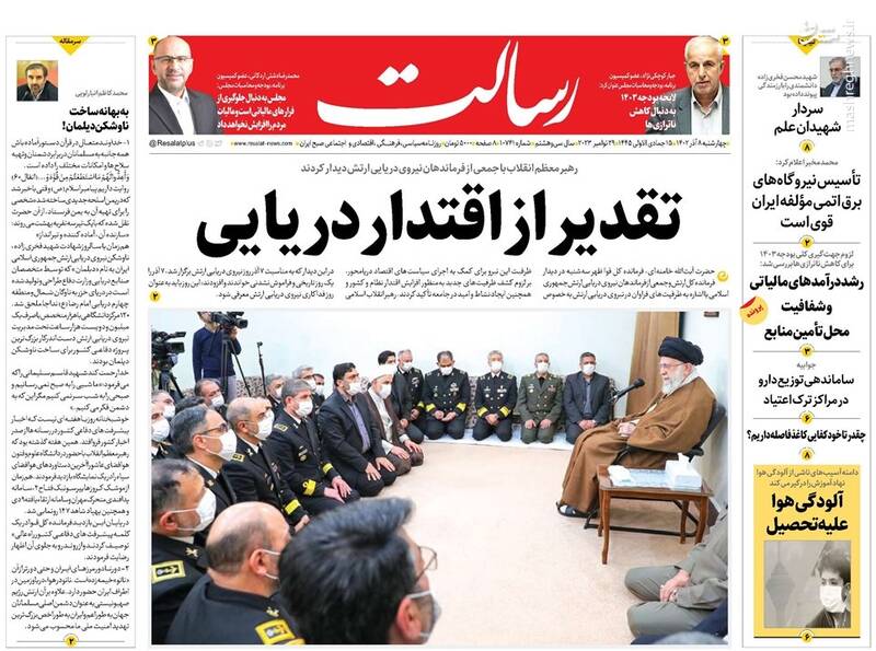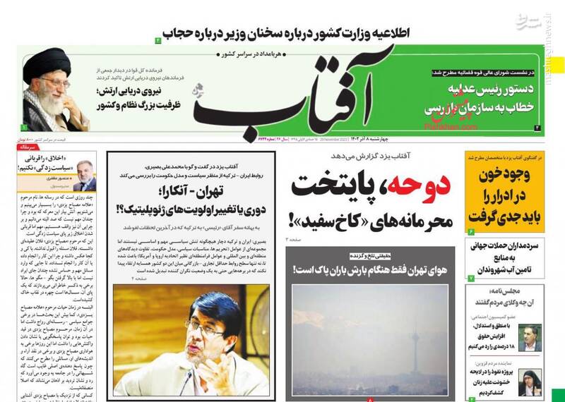 صفحه اول روزنامههای چهارشنبه ۸ آذر ۱۴۰۲