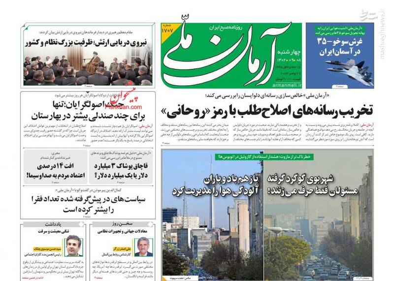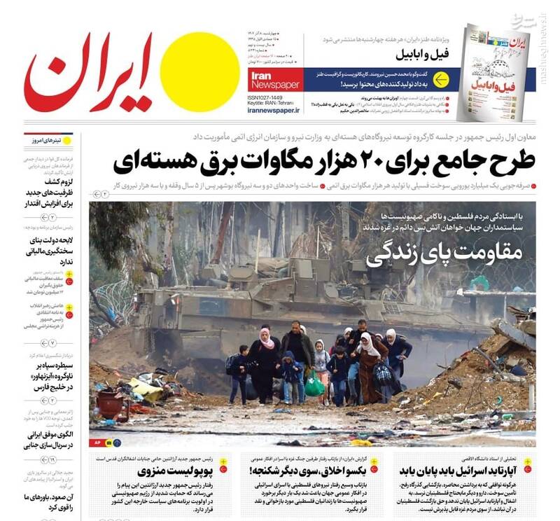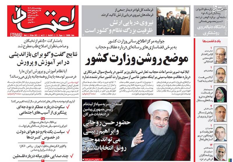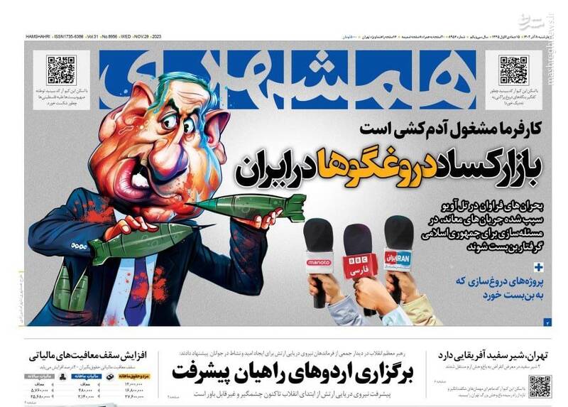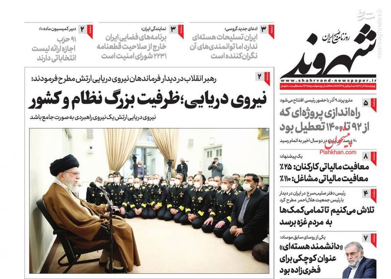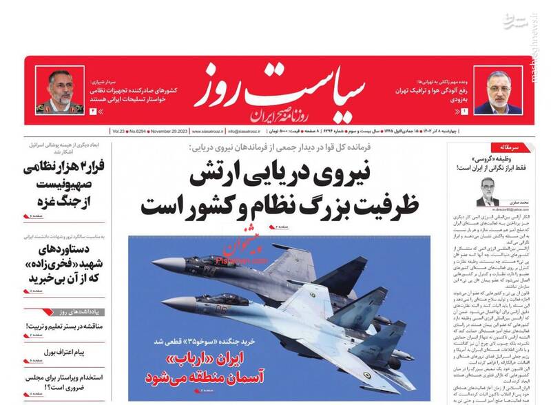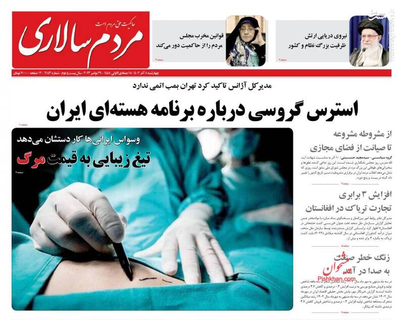 صفحه اول روزنامههای چهارشنبه ۸ آذر ۱۴۰۲