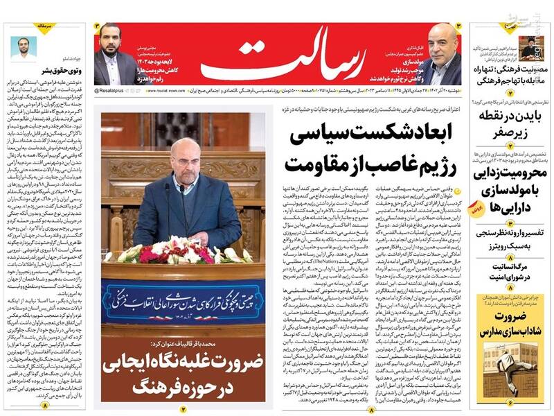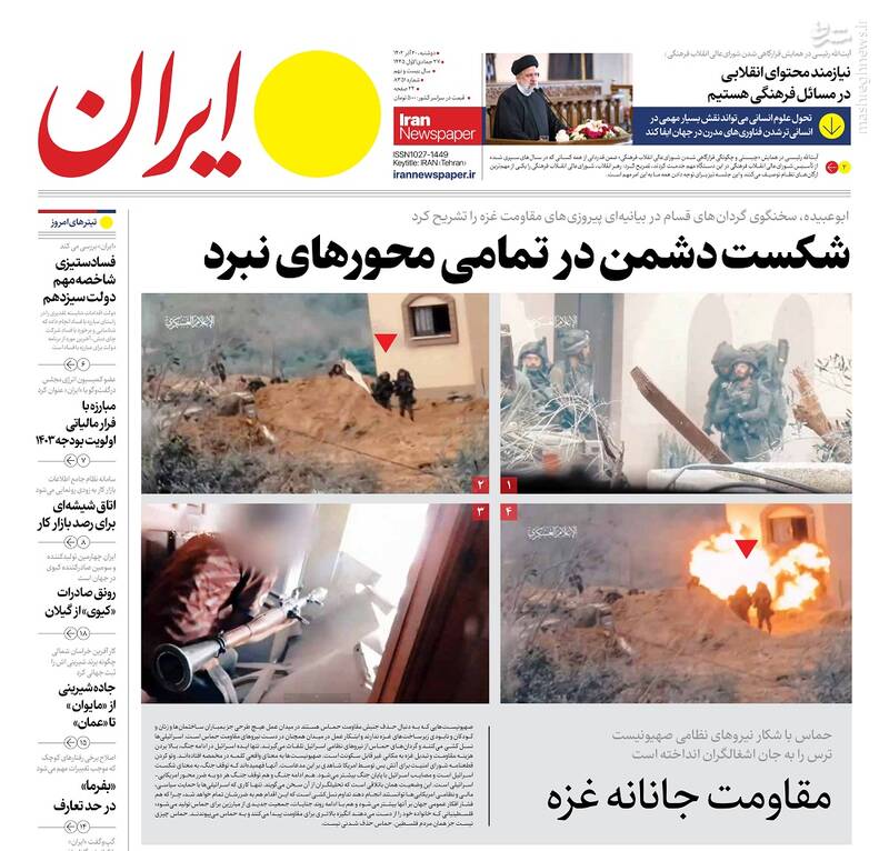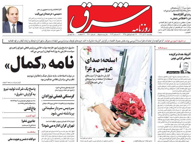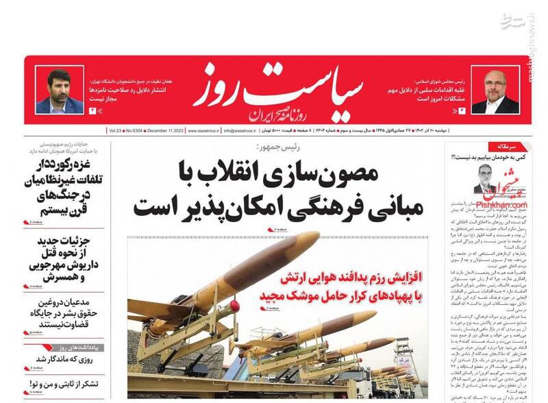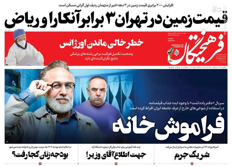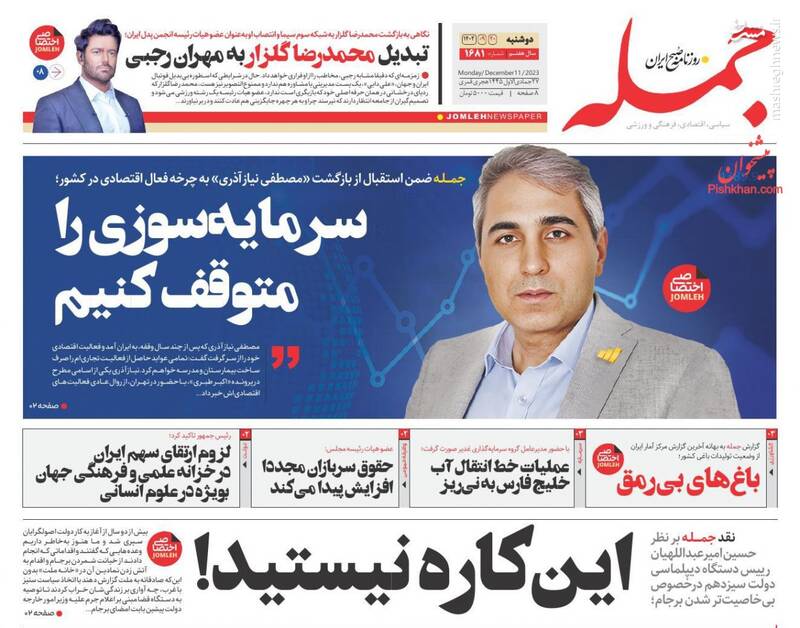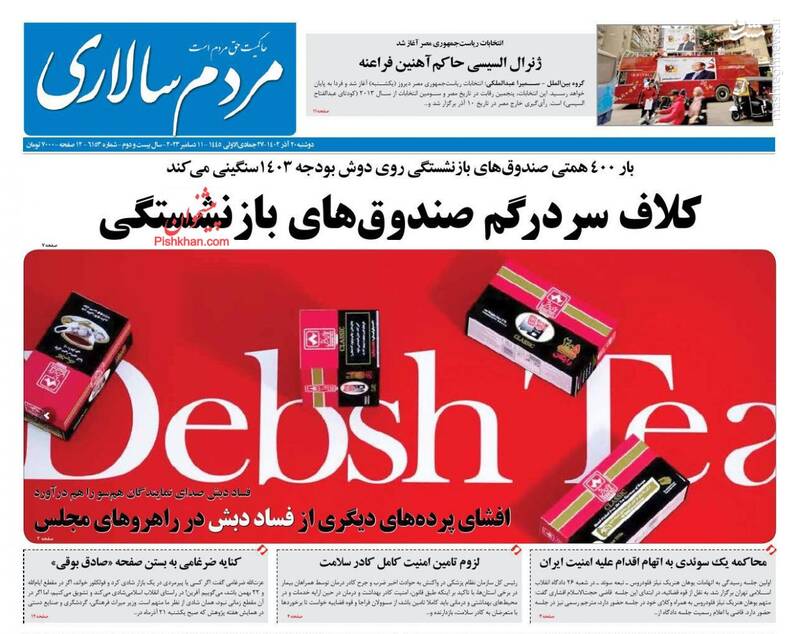 صفحه اول روزنامههای دوشنبه ۲۰ آذر ۱۴۰۲