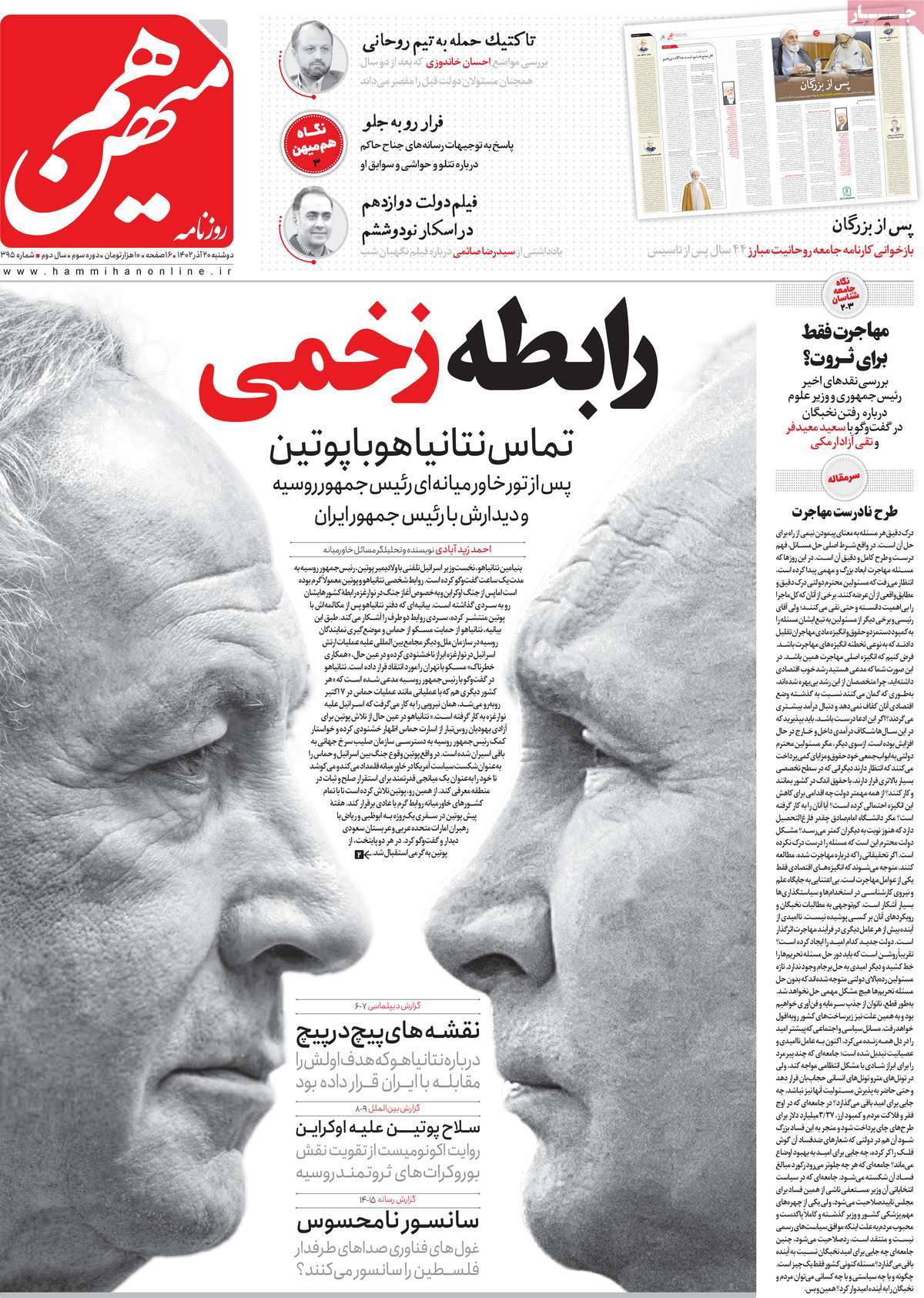 صفحه اول روزنامههای دوشنبه ۲۰ آذر ۱۴۰۲