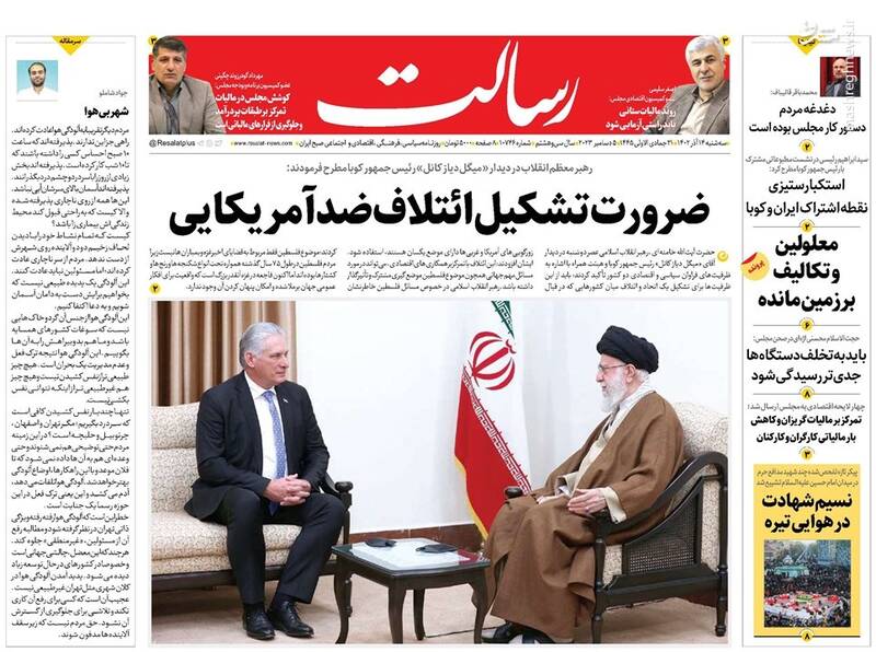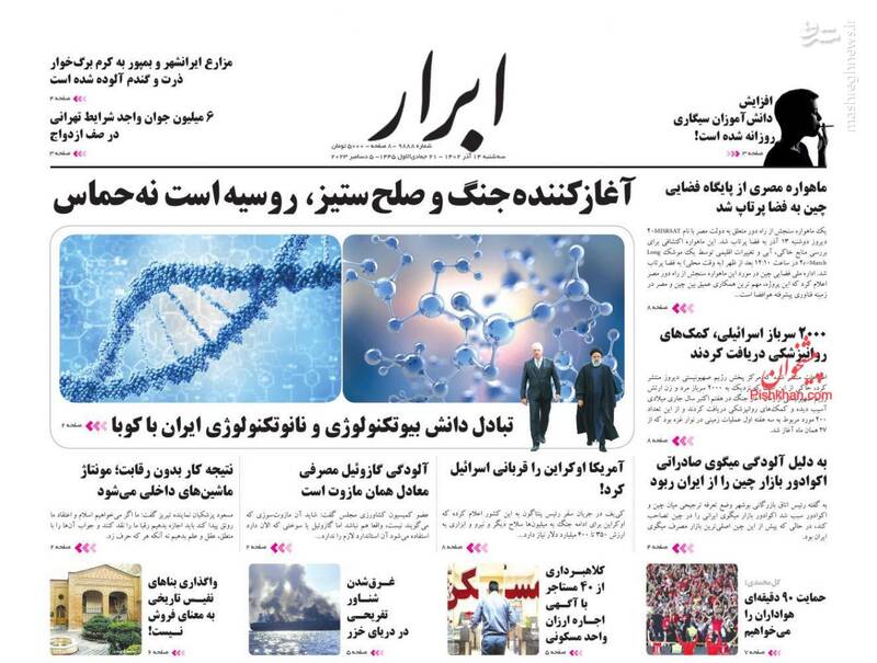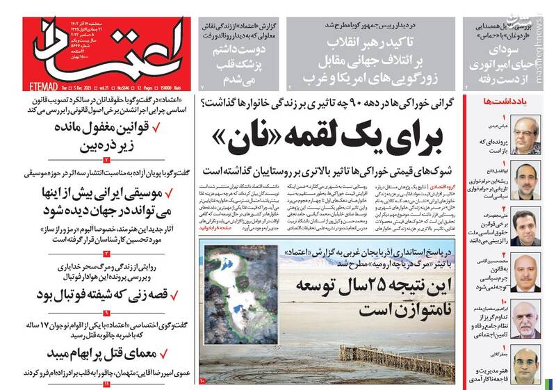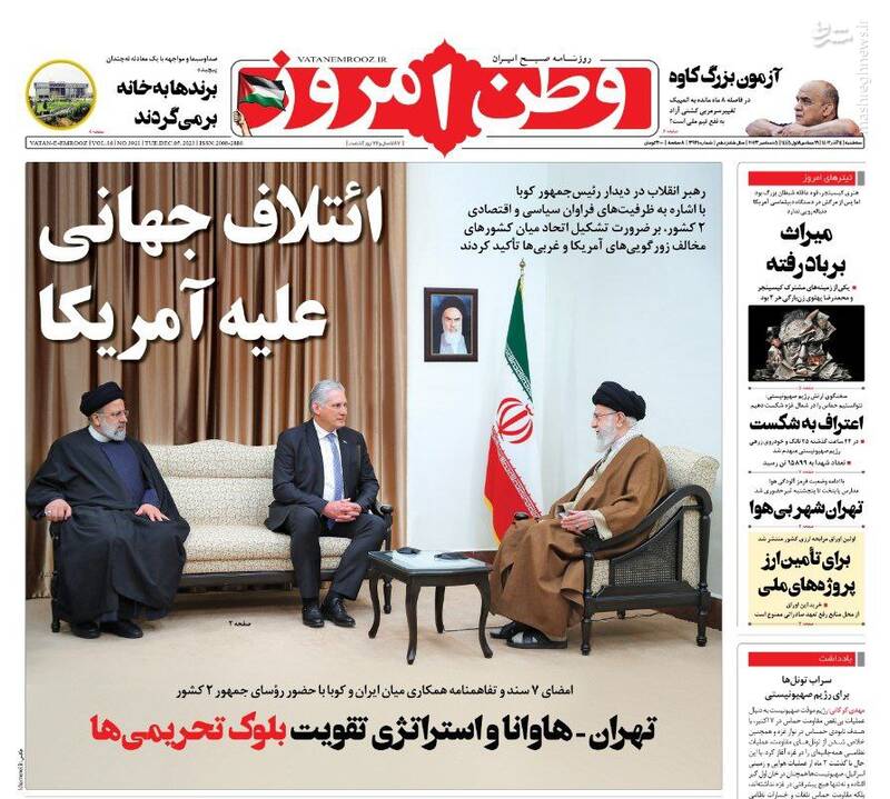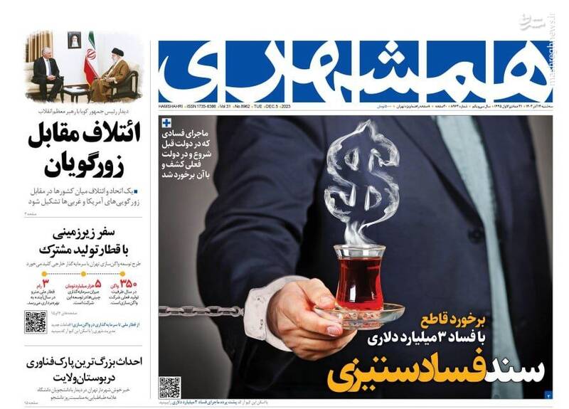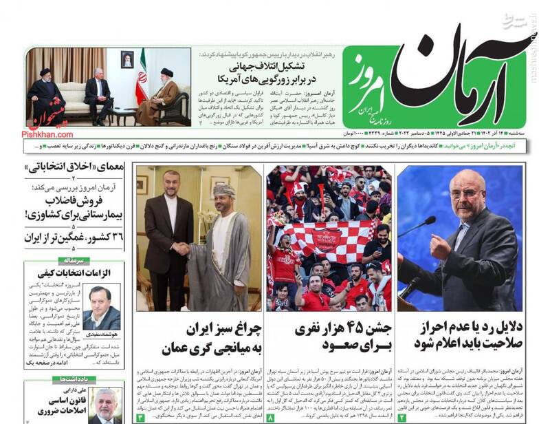 صفحه اول روزنامههای سهشنبه ۱۴ آذر ۱۴۰۲