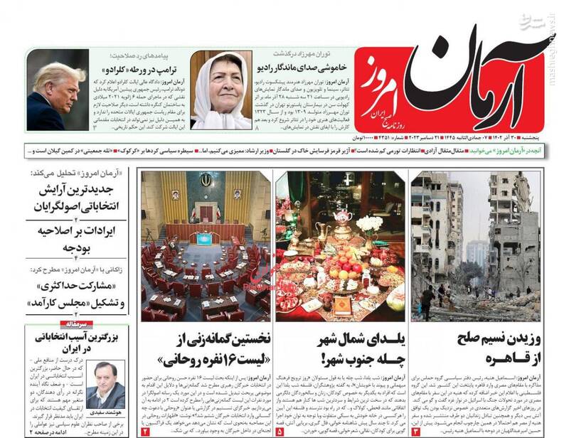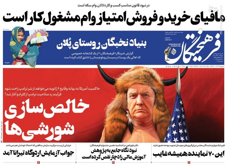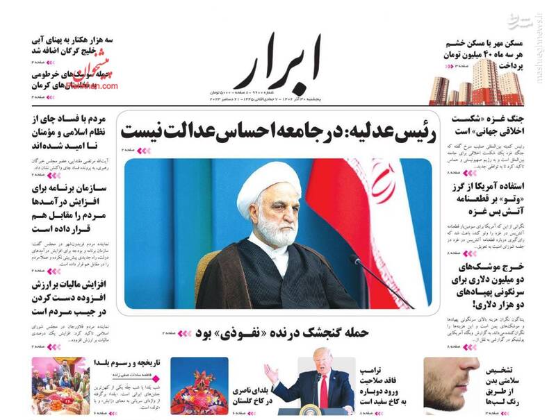 صفحه اول روزنامههای پنجشنبه ۳۰ آذر ۱۴۰۲