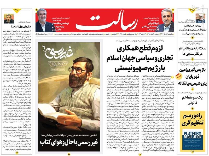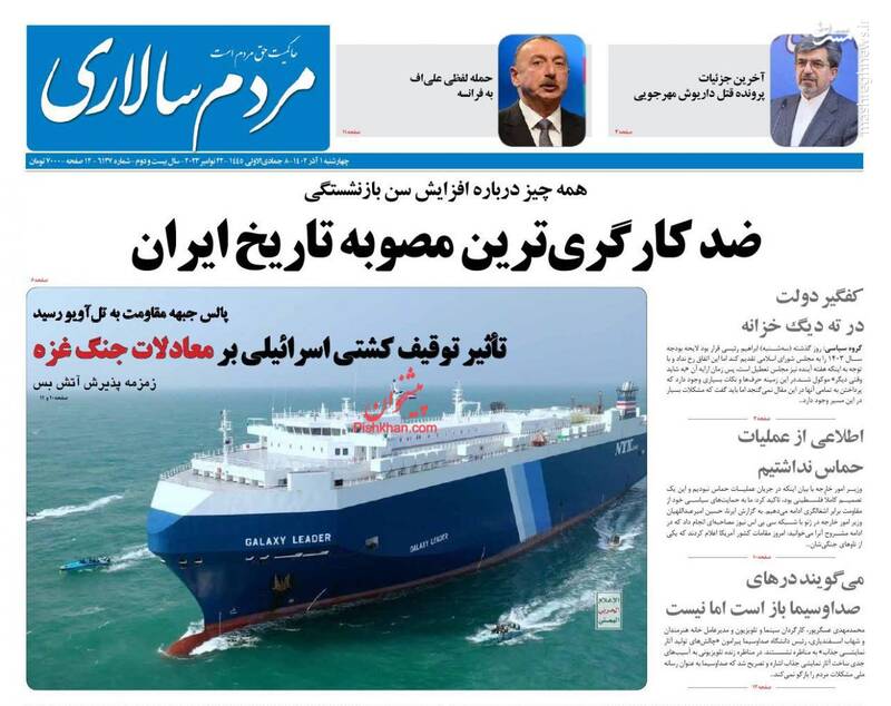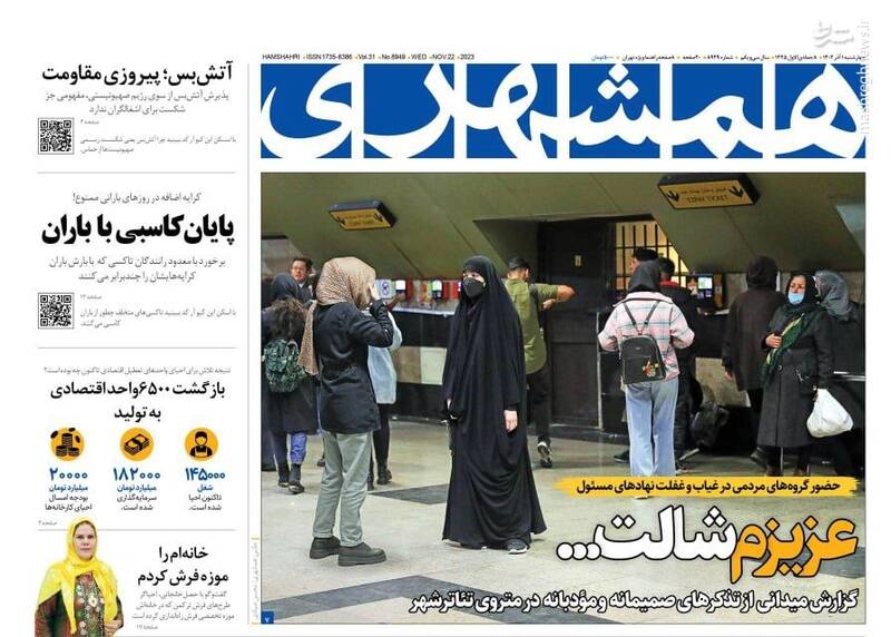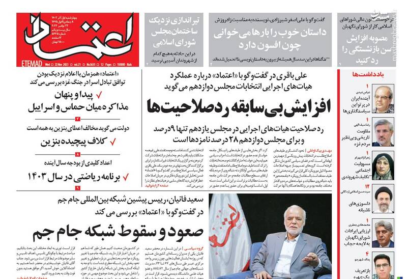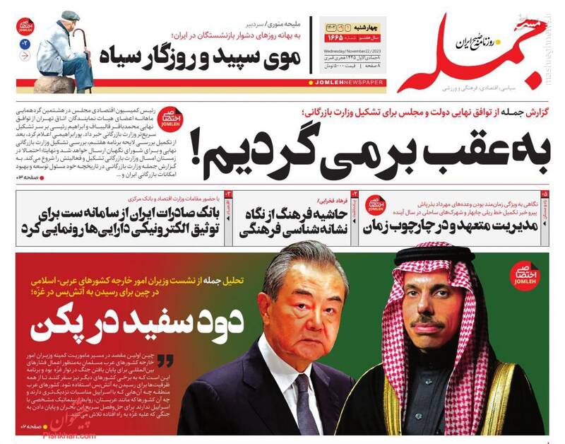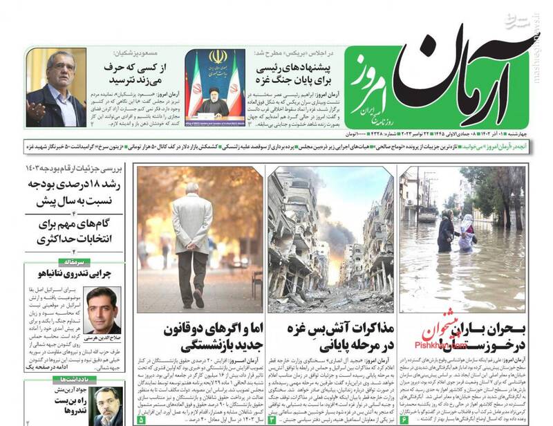 صفحه اول روزنامههای چهارشنبه اول آذر ۱۴۰۲