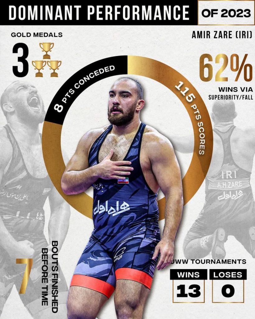 اتحادیه جهانی کشتی، امیرحسین زارع، قهرمان سال ۲۰۲۳ کشتی آزاد قهرمانی جهان را شایسته عنوان بهترین آزادکار دانست.