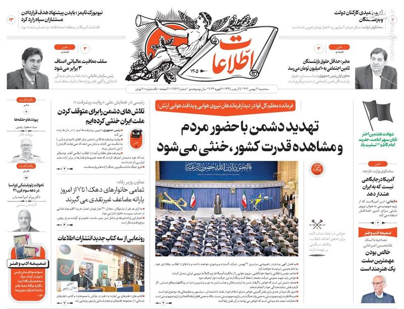 روزنامههای سهشنبه هفدهم بهمن ۱۴۰۲