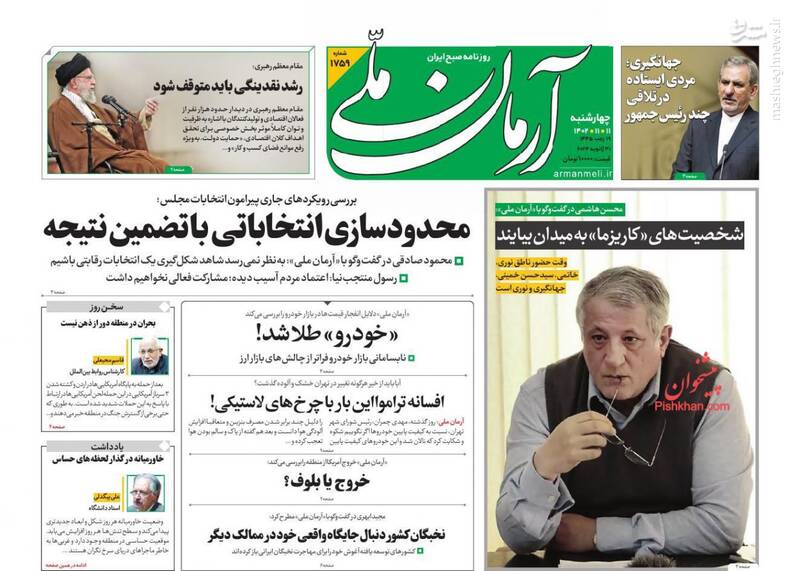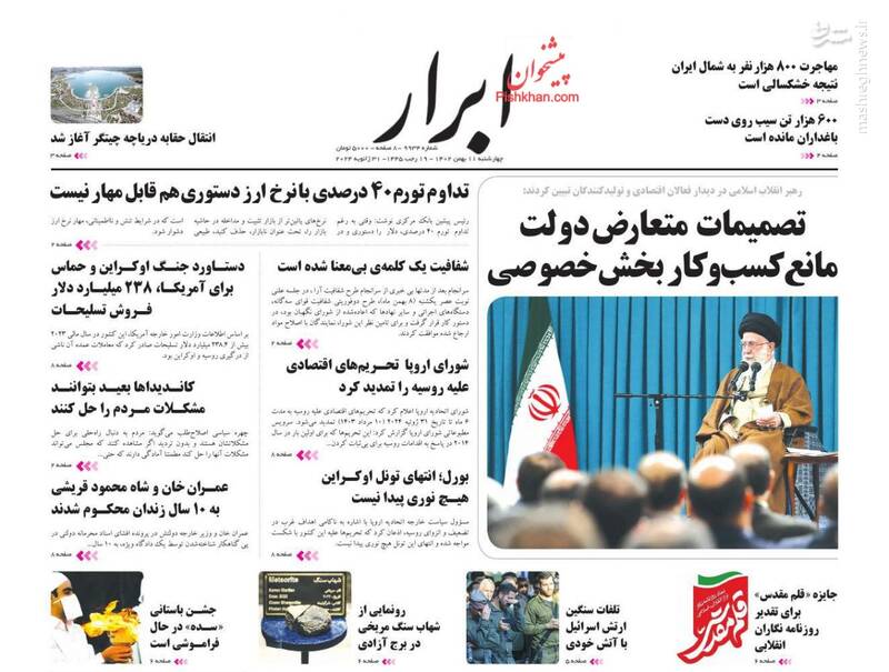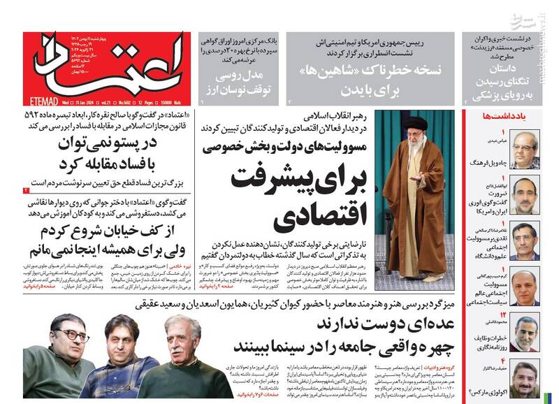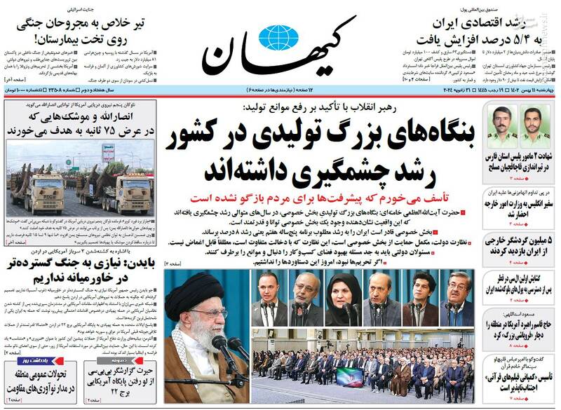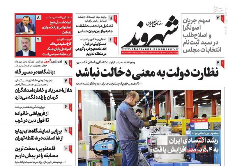 صفحه اول روزنامههای چهارشنبه ۱۱ بهمن ۱۴۰۲