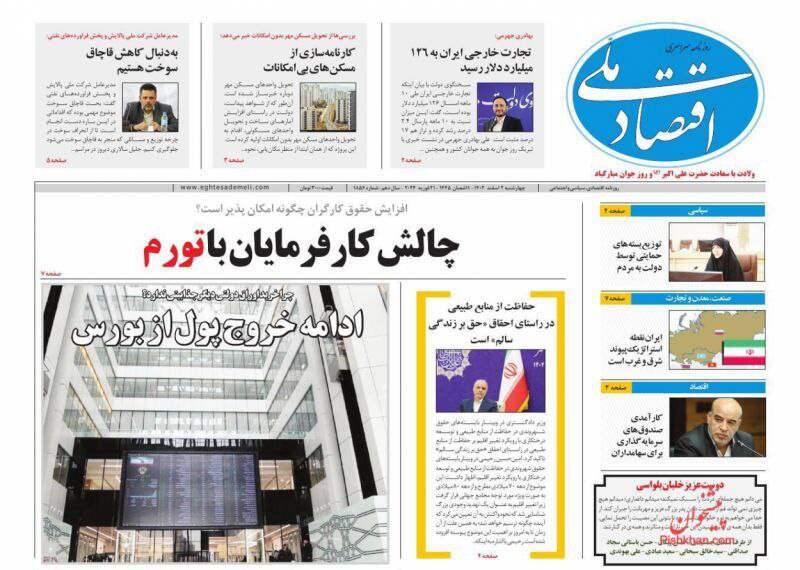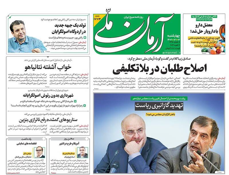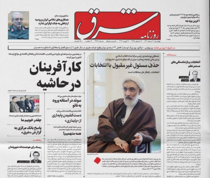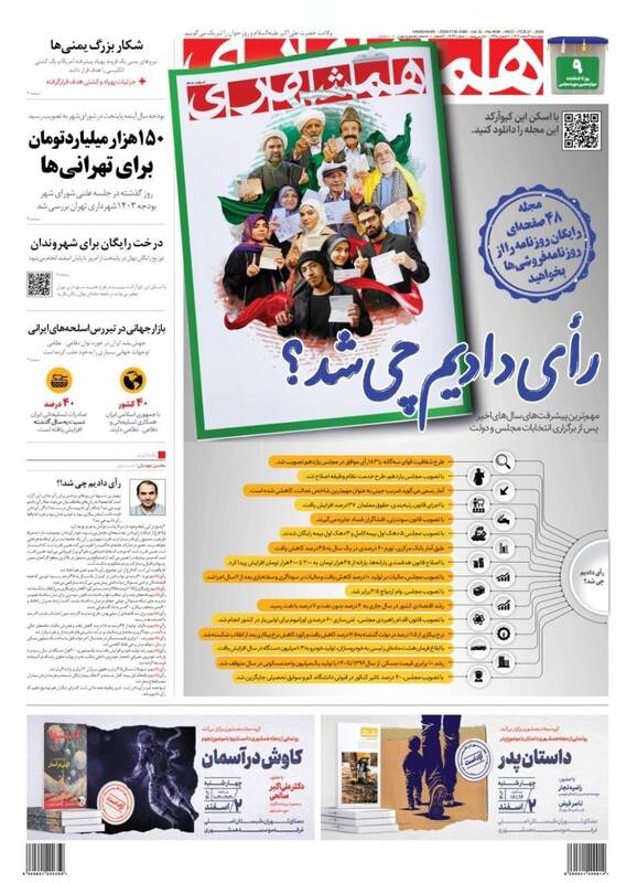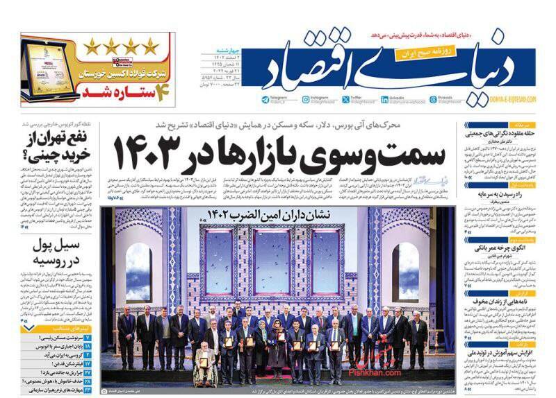 صفحه اول روزنامه های چهارشنبه ۲ اسفند ۱۴۰۲