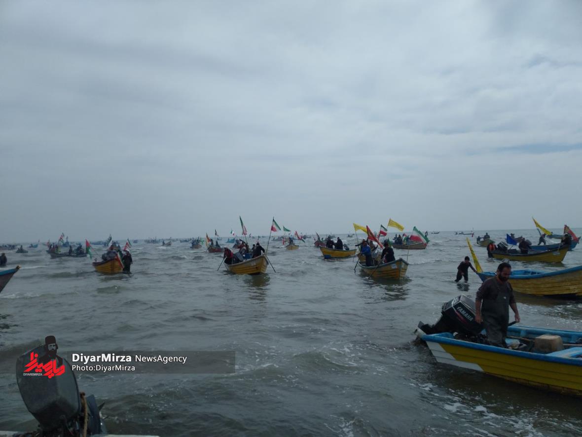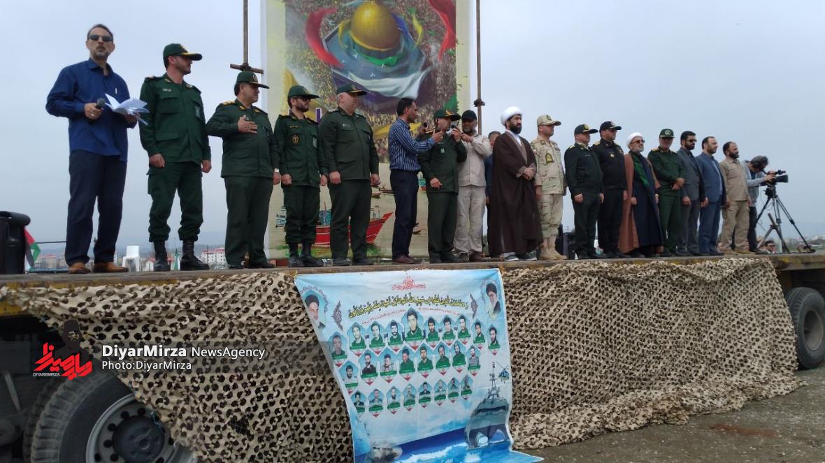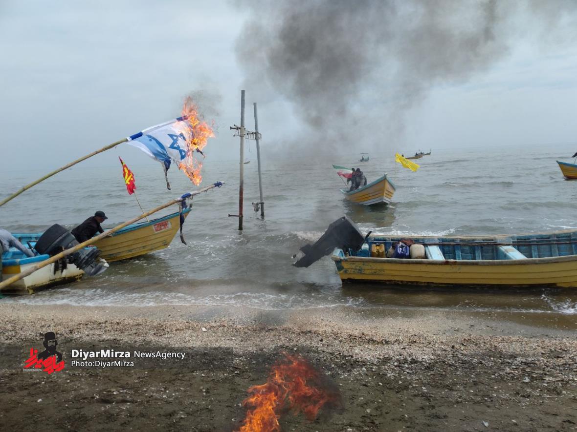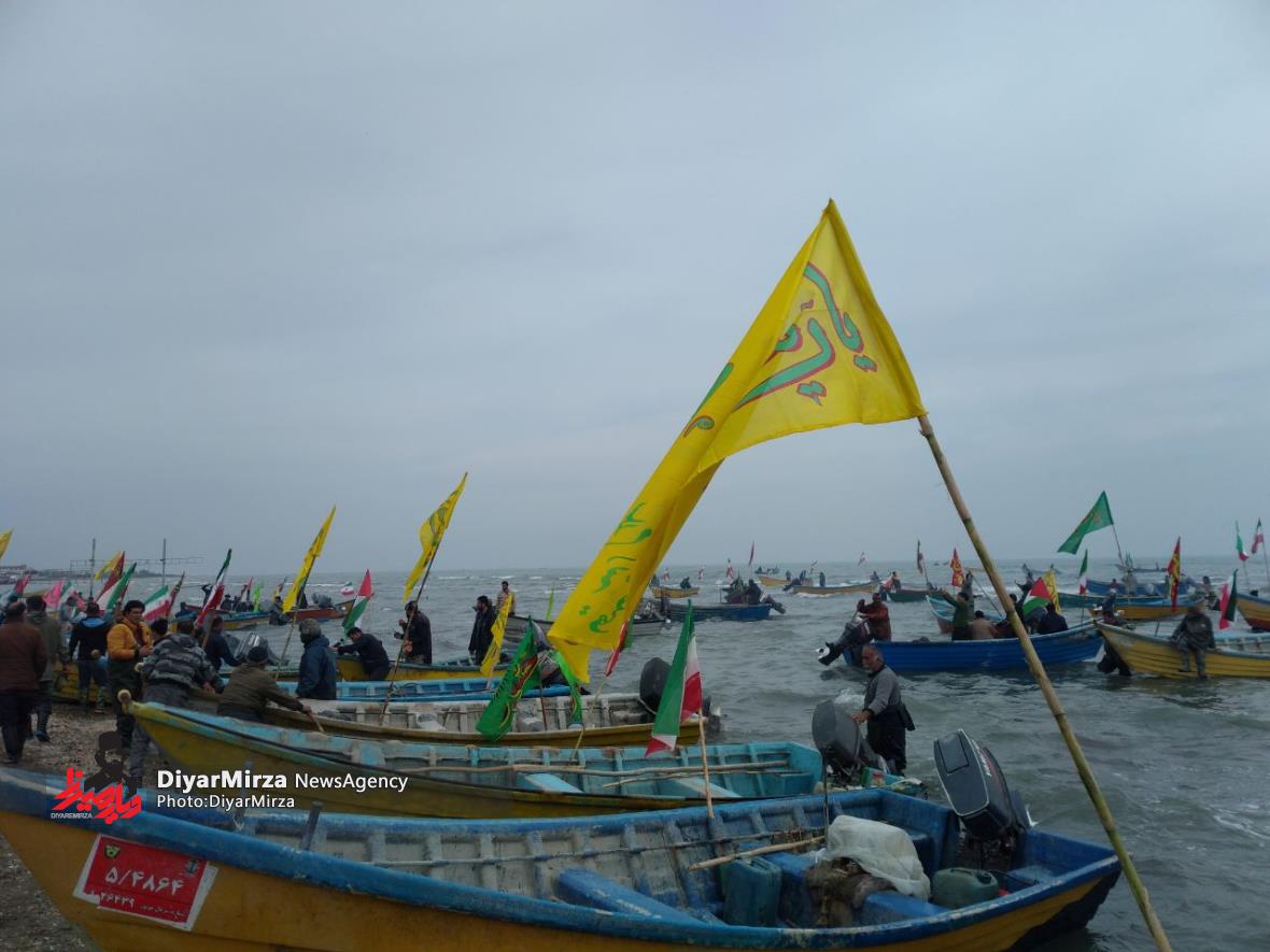 رژه شناوری بسیجیان پایگاه شمال دریایی ثامن الحجج (ع)سپاه پاسداران در حمایت از انتفاضه مردم مظلوم فلسطین و غزه با رمز “یا علیبن ابیطالب (ع)” در نوار ساحلی آستارا برگزار شد.