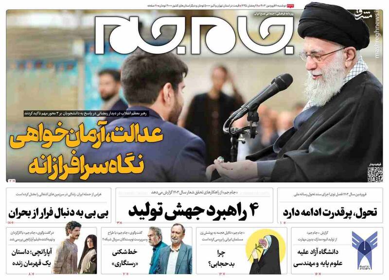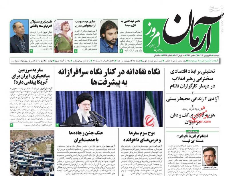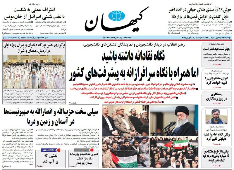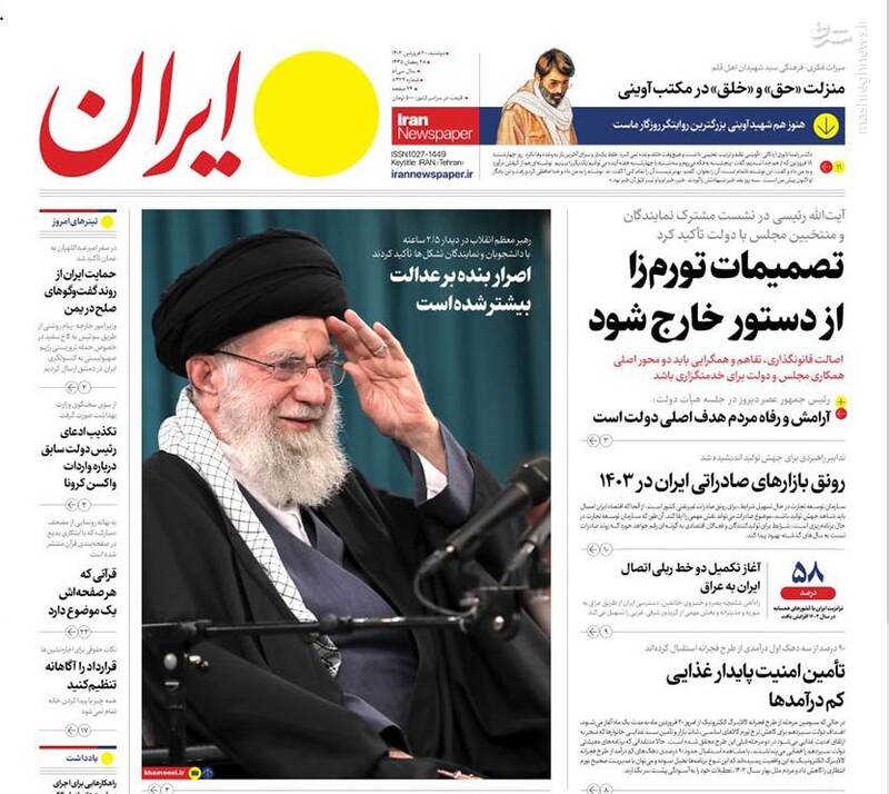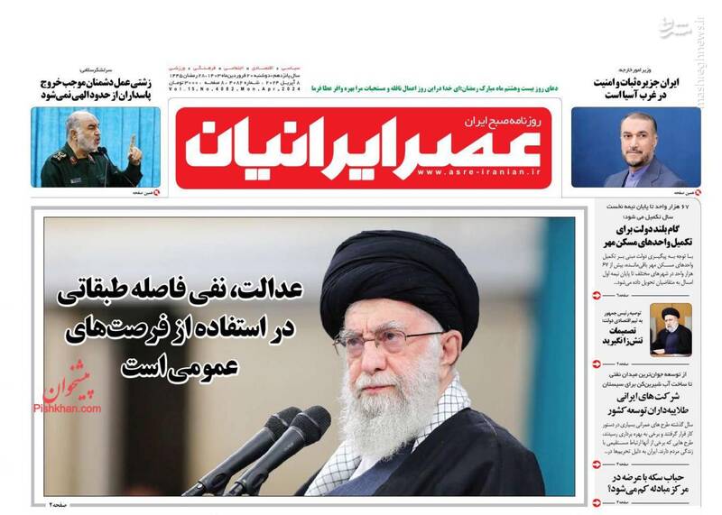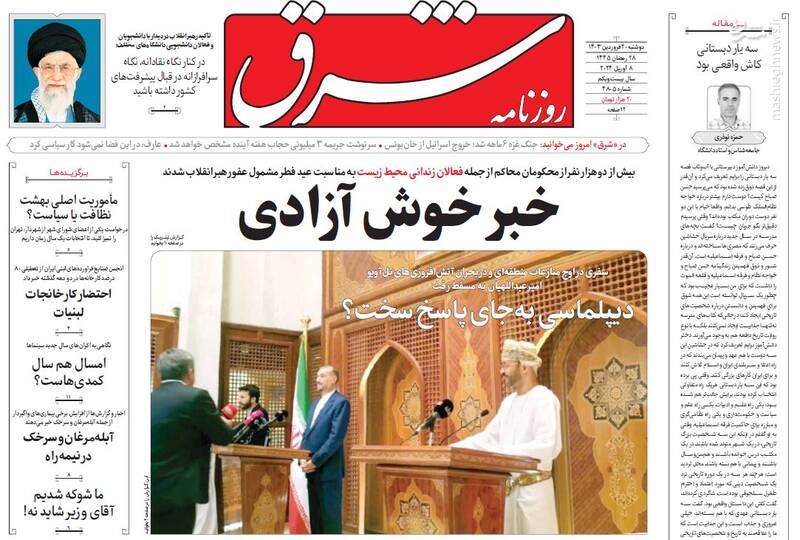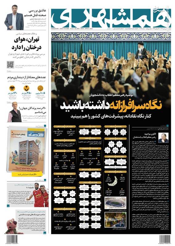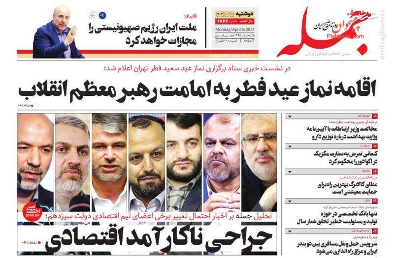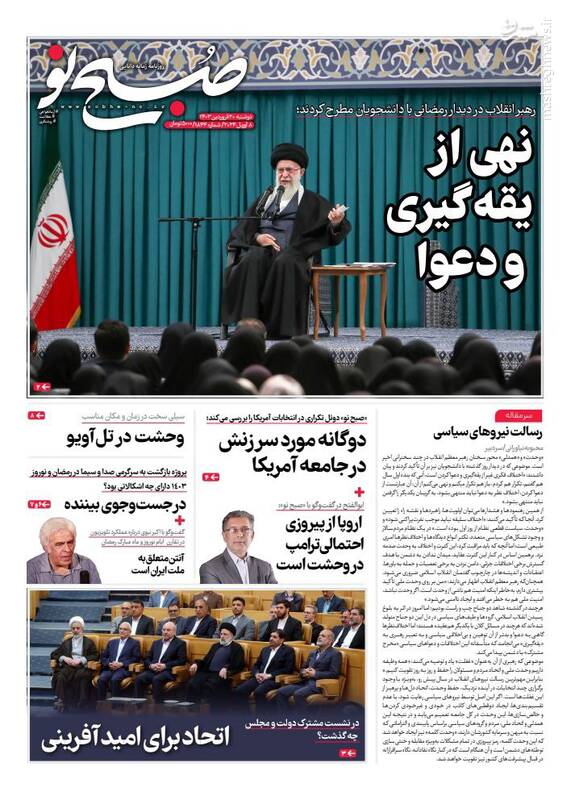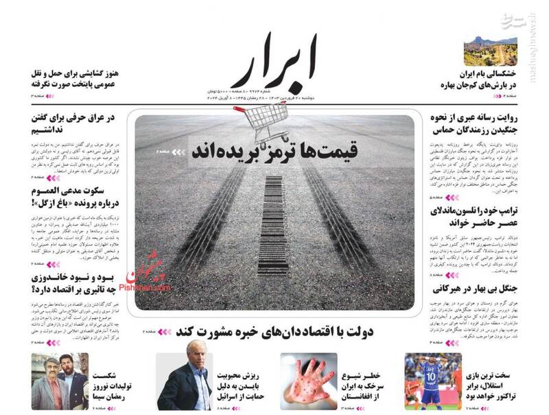 صفحه اول روزنامههای دوشنبه ۲۰ فروردین ۱۴۰۳