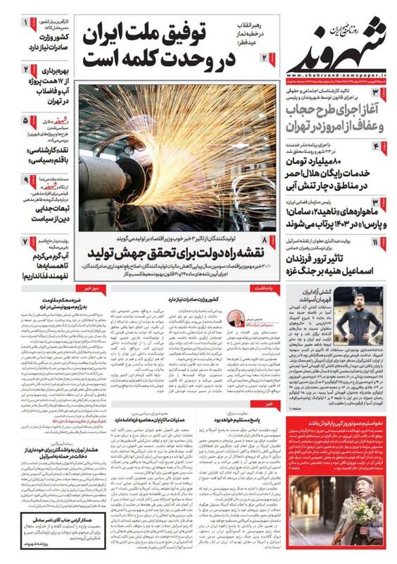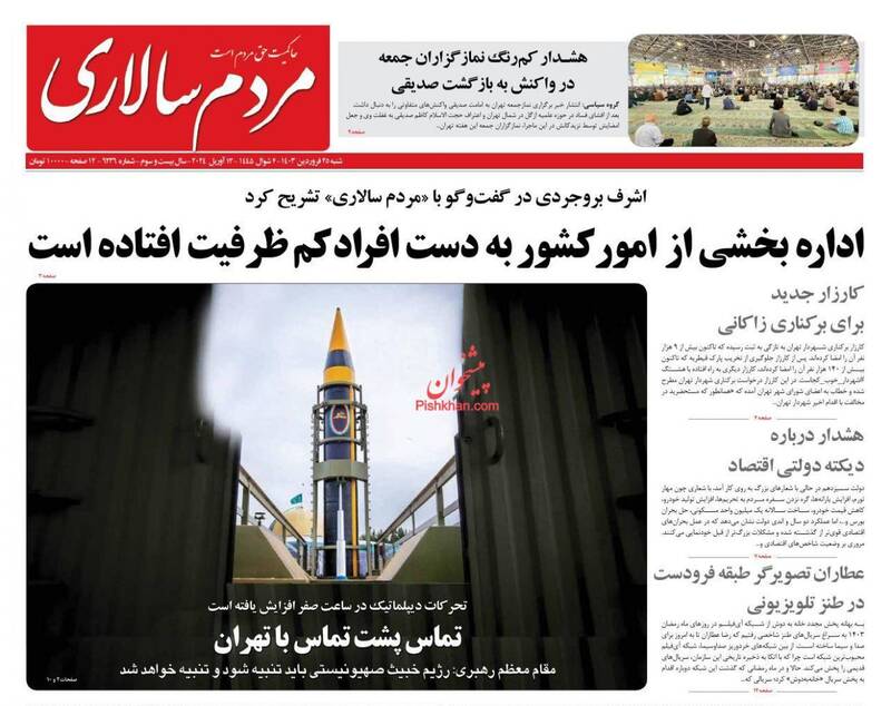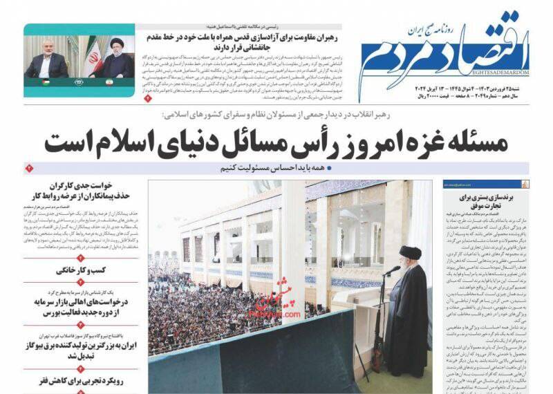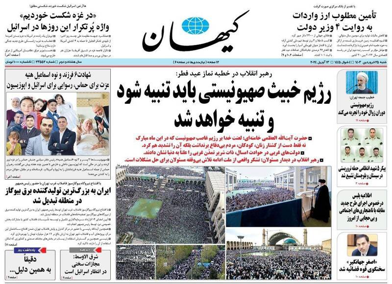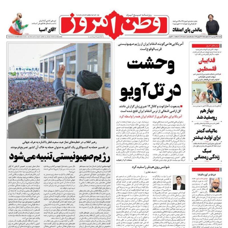 صفحه اول روزنامههای شنبه ۲۵ فروردین ۱۴۰۳