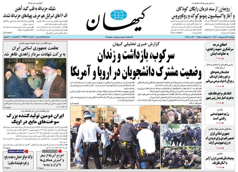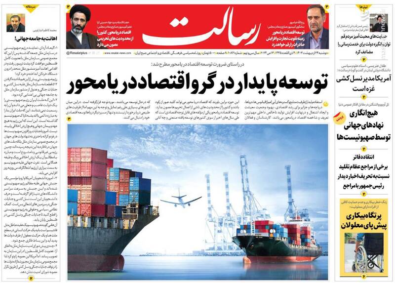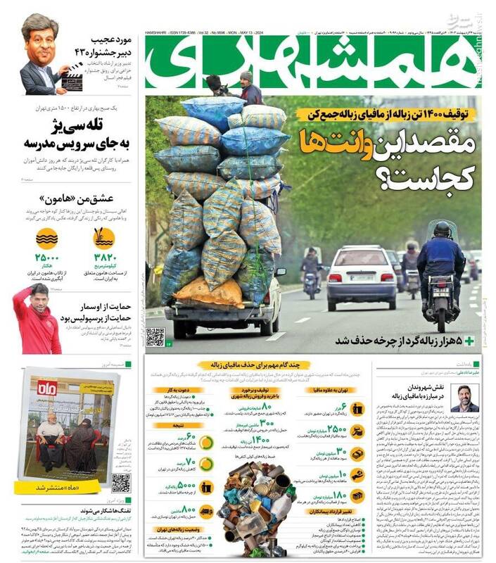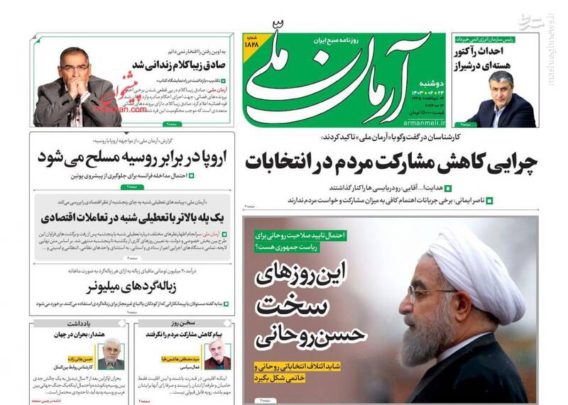 صفحه اول روزنامههای دوشنبه ۲۴ اردیبهشت ۱۴۰۳