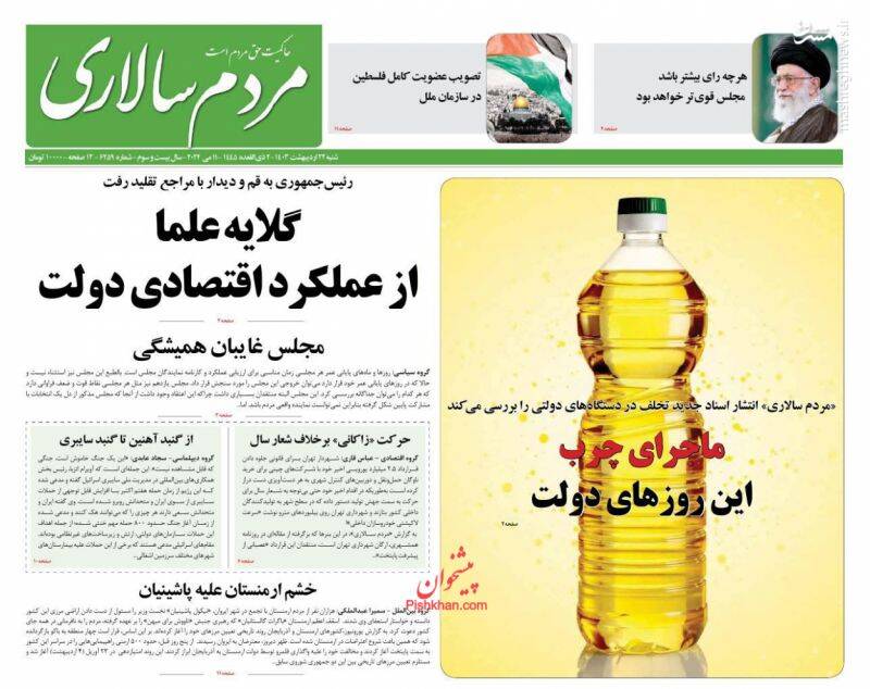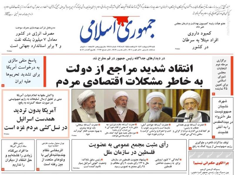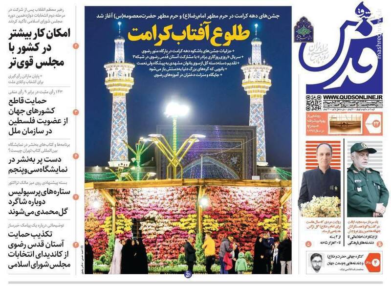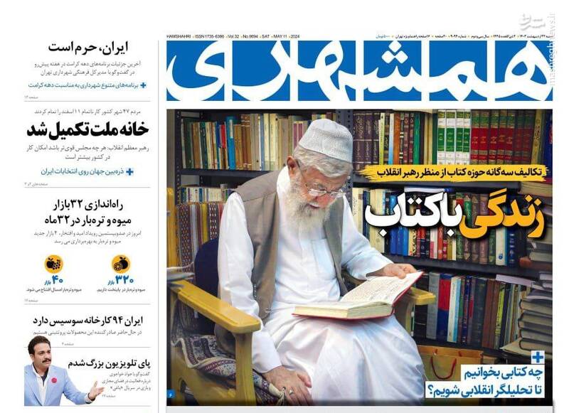 صفحه اول روزنامههای شنبه ۲۲ اردیبهشت ۱۴۰۳