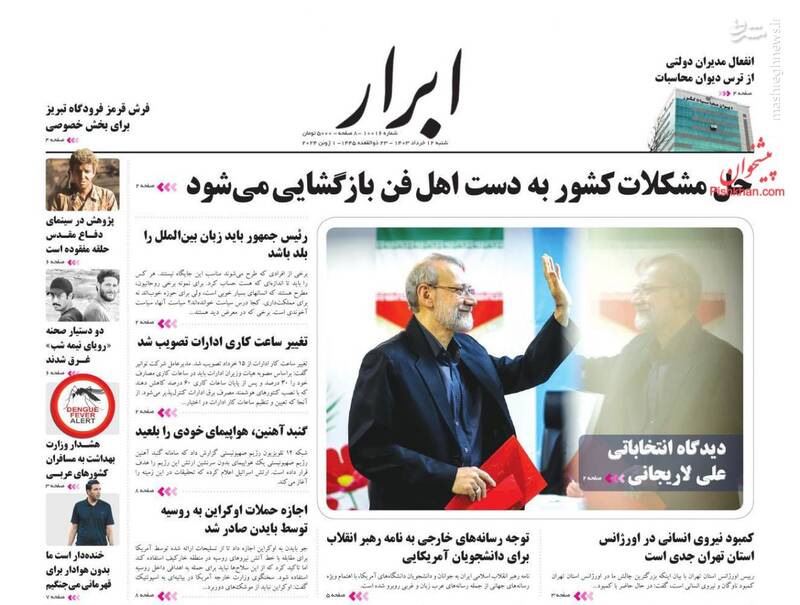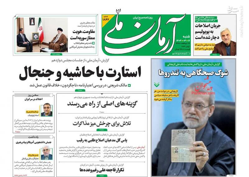 صفحه اول روزنامههای شنبه ۱۲ خرداد ۱۴۰۳