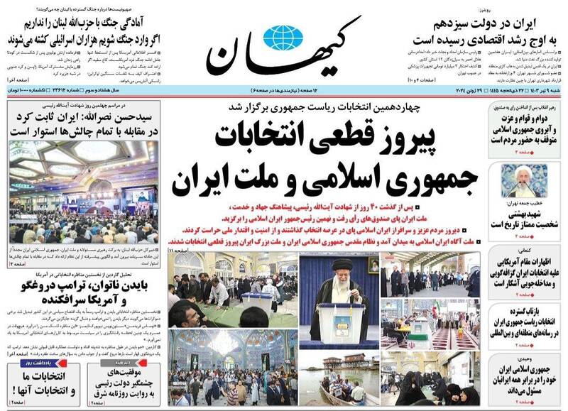 صفحه اول روزنامههای شنبه ۹ تیر ۱۴۰۳