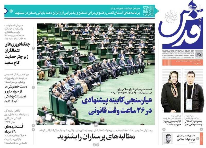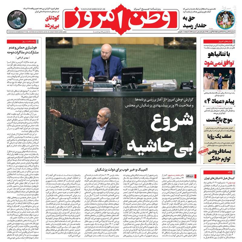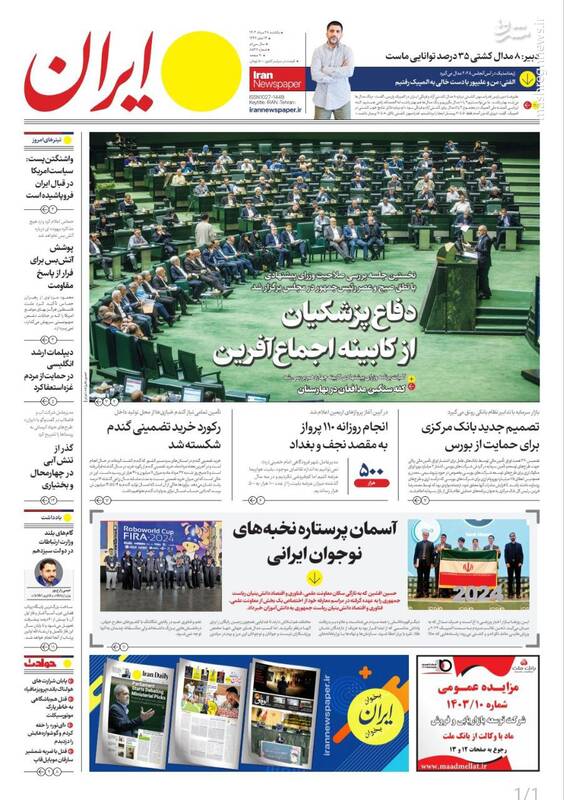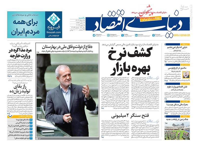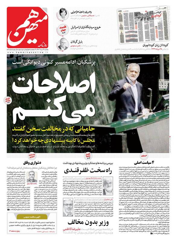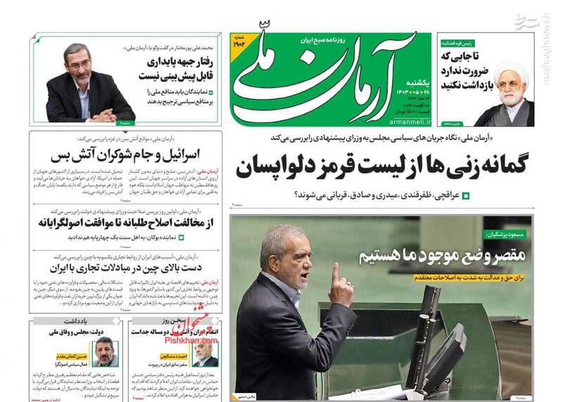 صفحه اول روزنامههای شنبه ۲۸ مردادماه ۱۴۰۳