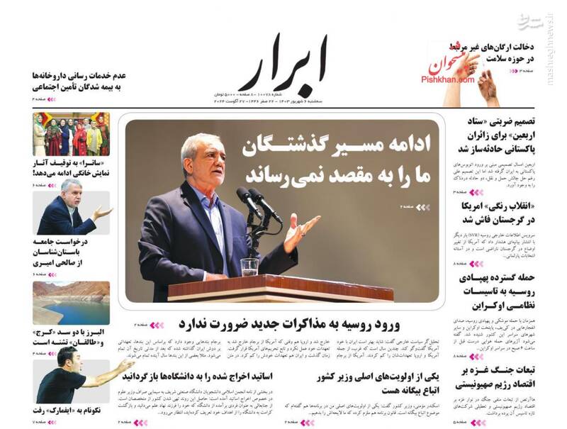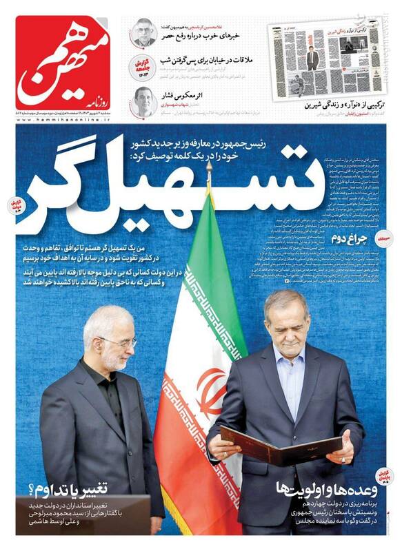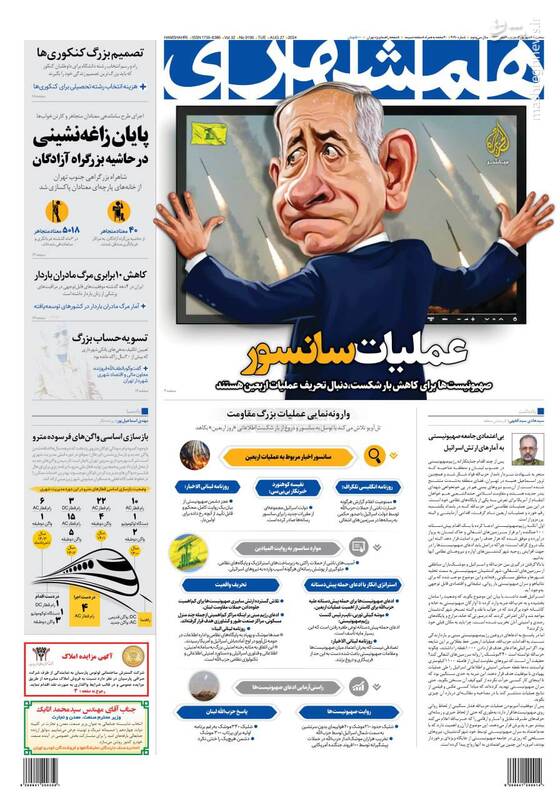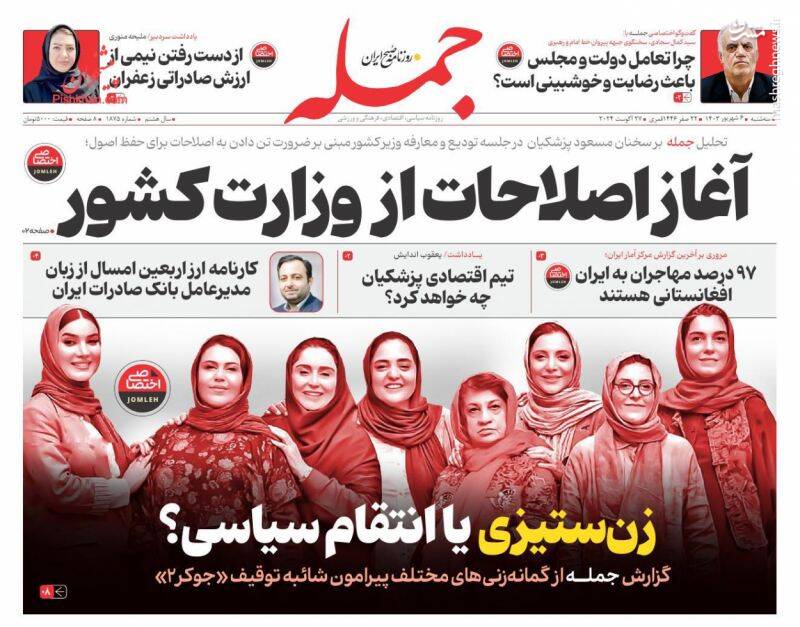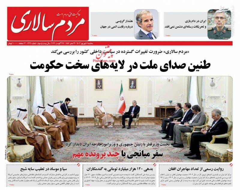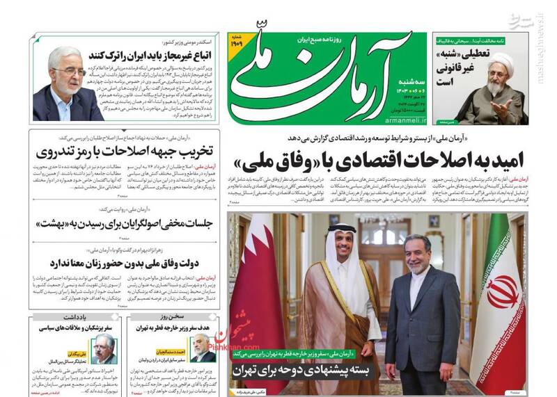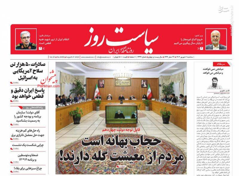 صفحه اول روزنامههای سه شنبه ۶ شهریور ۱۴۰۳