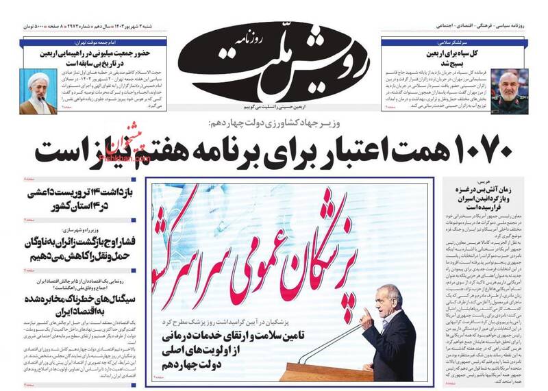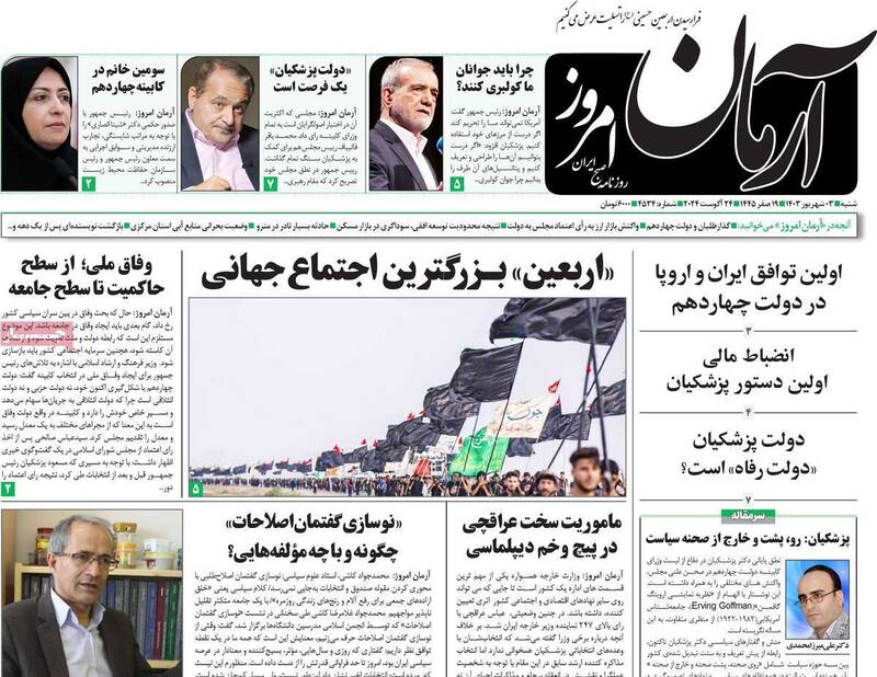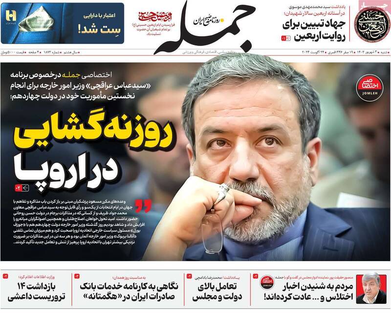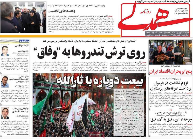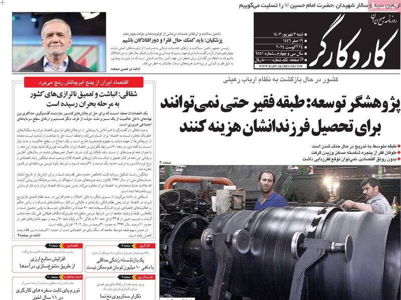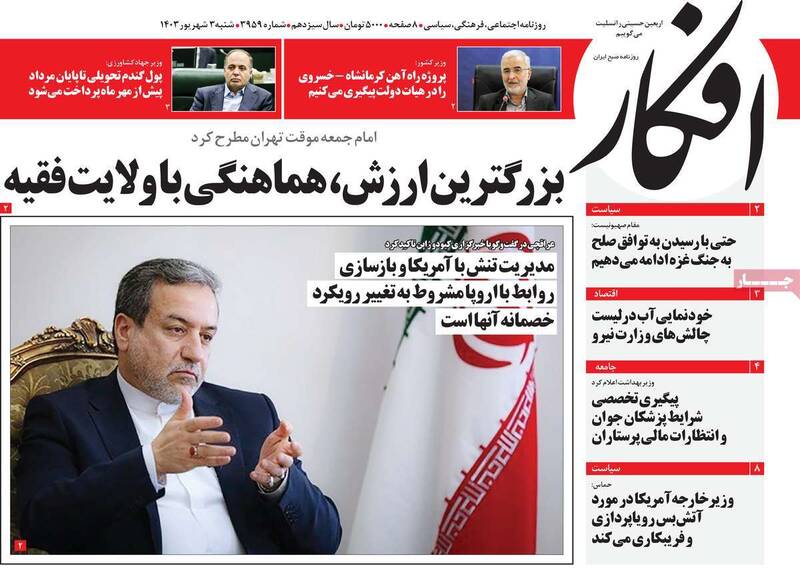 صفحه اول روزنامههای شنبه ۳ شهریور ۱۴۰۳