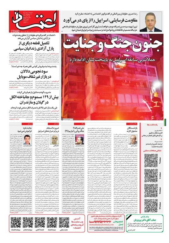 صفحه اول روزنامههای سهشنبه ۱۰ مهر ۱۴۰۳